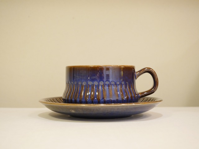 スウェーデンゲフレ社のコスモスシリーズです。 神秘的な深みのある青の釉薬は1つ1つ色の濃淡が違く、思わず魅入ってしまう美しさがあります。また、このころんと丸みを帯びたフォルムは手に優しくおさまります。飲み物だけでなく、スープにも良さそうです。1967年にはオランダ・ユトレヒトの国際展示会で優勝した理由がわかるゲフレの名作シリーズです。 +++++++++++++++ brand : Gefle series : kosmos designer : Berit Ternell age :1966-77 size:cup)φ920 H640 saucer)φ160(mm) condition : ヴィンテージとして状態は良好です +++++++++++++ +about "Gefle" Gefle Porslinsfabrik(ゲフレ社)は1910年にスウェーデン東部で設立されました。1935年にUpsala Ekeby(ウプサラエクビー)に買収された後も製造されていましたが、1970年代を最後に製造終了となりました。古い時代の製品にもなり現在では綺麗なお品を見つけることも困難であるためゲフレブランドの希少価値は高くなってきています。 +お買い求めにあたって こちらの商品は北欧の家庭で長く生活をともにしてきたヴィンテージ品です。そのため新しいものとは違い、その年月を感じる痕跡があります。できるだけ説明文に記載は致しますが、微細な全てのサインをお伝えすることができかねます。ご質問がある際はご購入前にお気軽にご連絡ください。そうしたヴィンテージ品であることをご理解の上ご注文いただきますようお願い申し上げます。