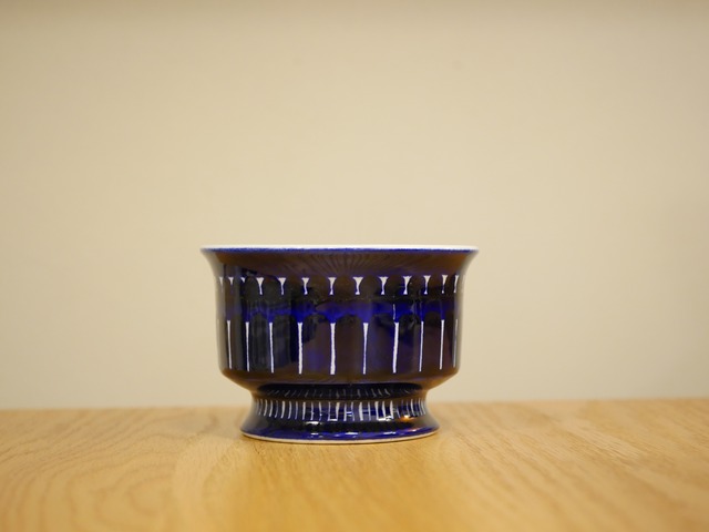 ヴァレンシアシリーズはARABIA社デザイナーのウラ・プロコッペがフォルム・デコレートともに担当した作品です。 幼少期に南欧で過ごしていたウラ・プロコッペが当時の想いを色鮮やかなコバルトブルーでデザインしました。 専任の絵付け師が繊細なデザインを全て手で描いています。当初は高級ラインとして国内用に販売されましたが、海外からも人気が殺到し、海外向けにも制作され、ARABIAの代名詞とも言える作品になりました。 そしてこれがARABIAの最後のハンドペイントシリーズとなりました。 バックスタンプがサインのものは1960年代初期の作品でありフィンランド国内販売用に製作されたものとなっています。 +++++++++++++++ brand:ARABIA series:Valencia design: Ulla Procope age:1960-2002 size:φ95 H65/(mm) condition:中に製造時のものと思われる黒点が一つありますがコンディションは問題ありません。 +++++++++++++++ +about "ARABIA" フィンランドで最も有名な陶磁器ブランドの一つである「アラビア(ARABIA)」はへルシンキ郊外の「アラビア」地区で1873年に創業した窯です。2007年にフィスカース社の傘下になっています。Kaj Franck、Ulla Procopé、Raija Uosikkinen、Esteri Tomulaなど世界屈指のデザイナー達が多く在籍していました。その作品は140年以上フィンランドの人の生活に馴染み、美しく、使いやすく、長く長く受け継がれ、世界も魅了しています。 +お買い求めにあたって こちらの商品は北欧の家庭で長く生活をともにしてきたヴィンテージ品です。そのため新しいものとは違い、その年月を感じる痕跡があります。できるだけ説明文に記載は致しますが、微細な全てのサインをお伝えすることができかねます。ご質問がある際はご購入前にお気軽にご連絡ください。そうしたヴィンテージ品であることをご理解の上ご注文いただきますようお願い申し上げます。