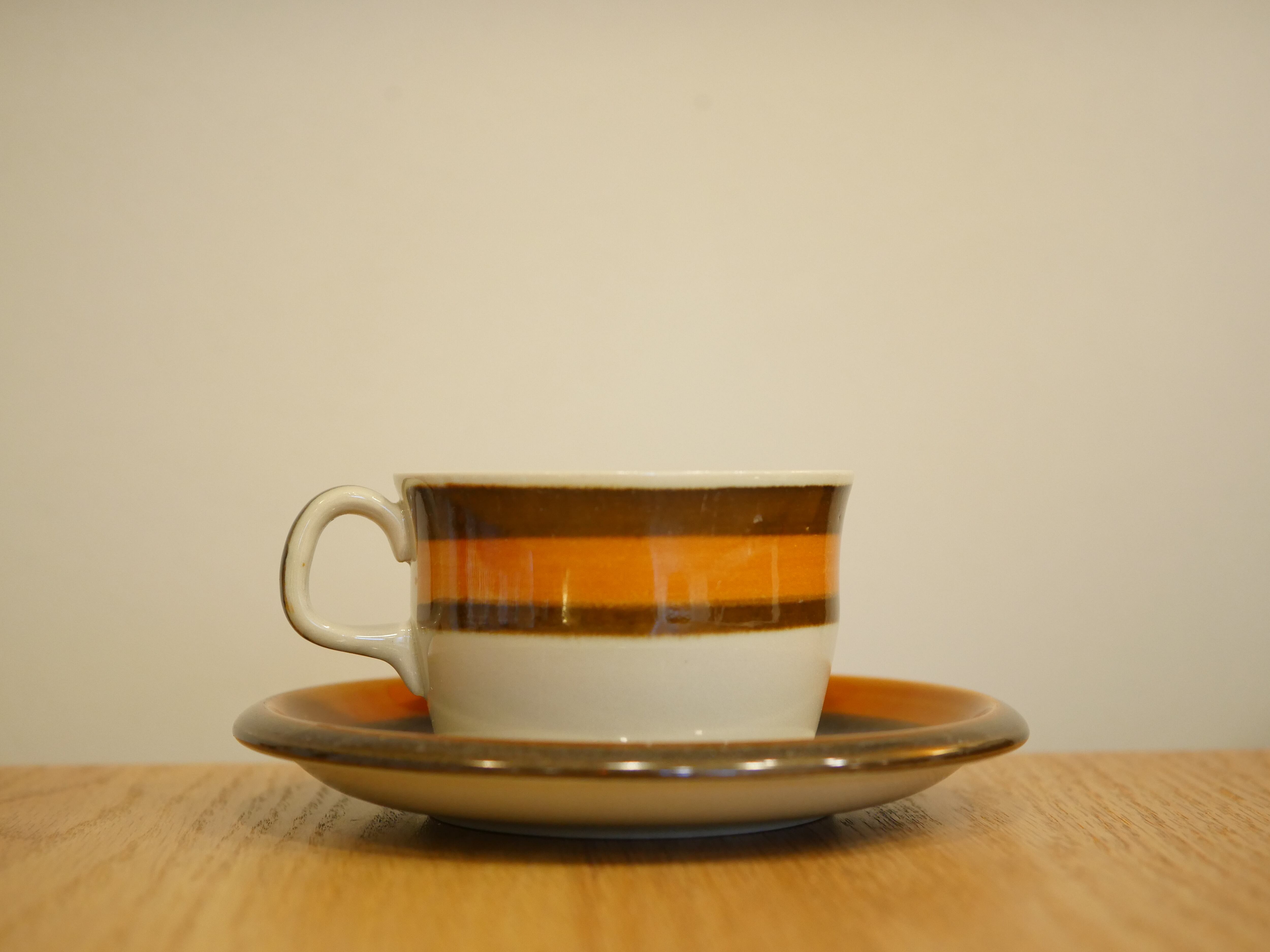 グレージュをベースとし、温かいブラウンとオレンジの組み合わせが、どことなく和のような懐かしさを感じさせます。とろりとした釉薬に丸みのあるフォルムはどこか可愛らしさがあり、マリアンヌ・ウエストマンらしさがあります。シンプルなデザインであっても、長い年月を経てもいつまでも愛される魅力がある作品です。
