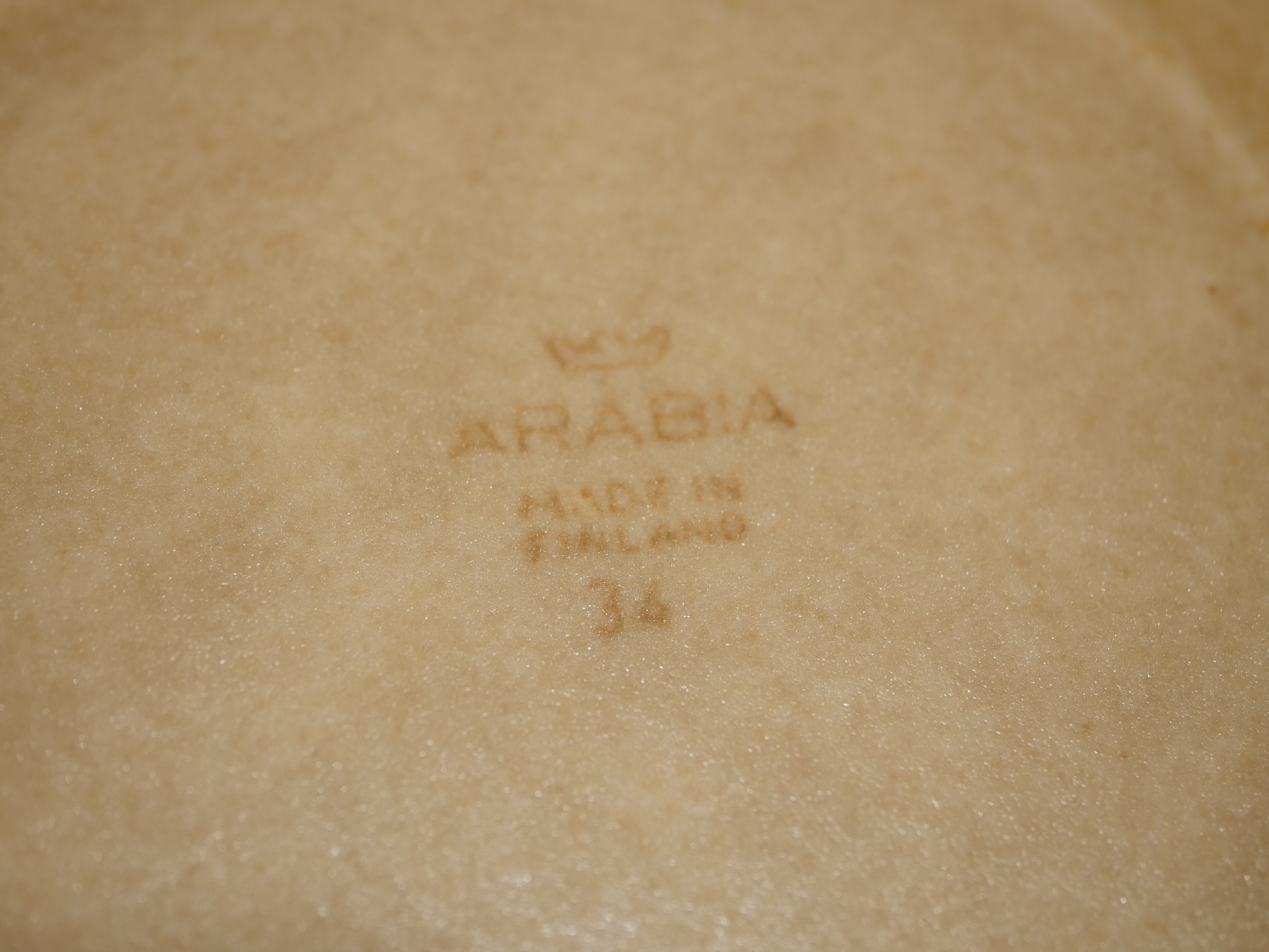 フィンランドで最も有名な陶磁器ブランドの一つである「アラビア(ARABIA)」はへルシンキ郊外の「アラビア」地区で1873年に創業した窯です。2007年にフィスカース社の傘下になっています。Kaj Franck、Ulla Procopé、Raija Uosikkinen、Esteri Tomulaなど世界屈指のデザイナー達が多く在籍していました。その作品は140年以上フィンランドの人の生活に馴染み、美しく、使いやすく、長く長く受け継がれ、世界も魅了しています。