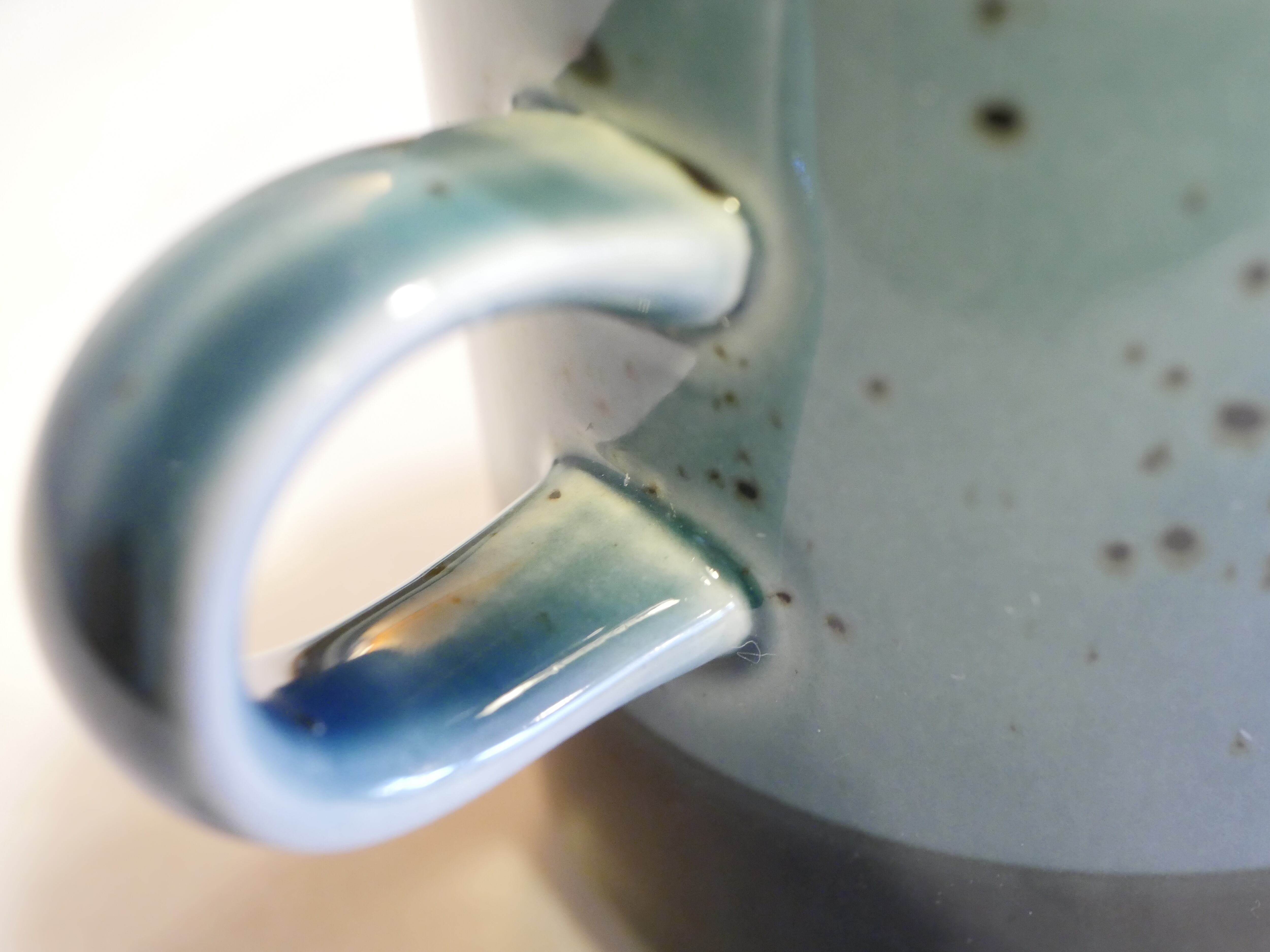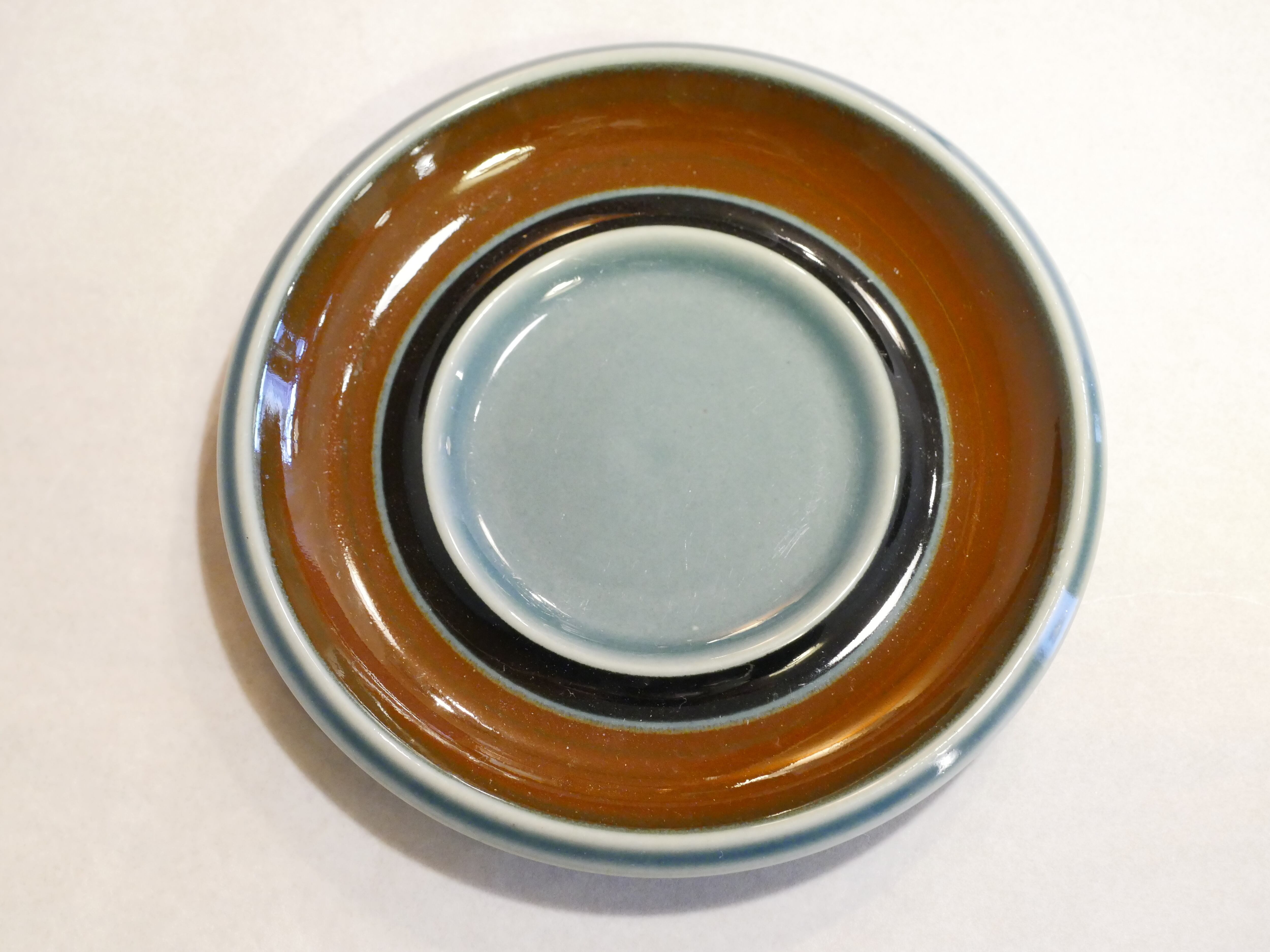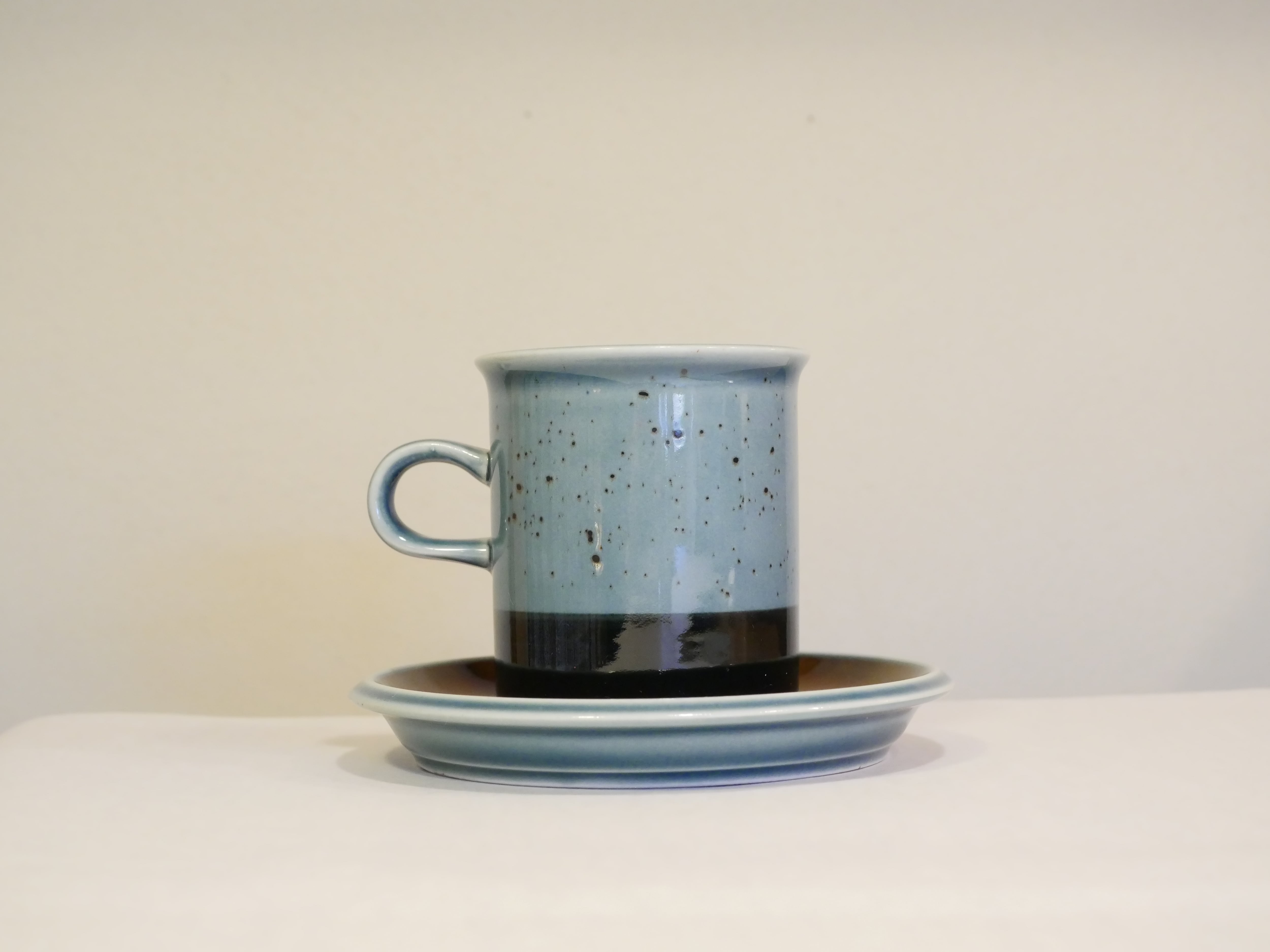 メリとはフィンランド語で海を意味する言葉。青碧のようなベースの色にカップは黒、ソーサーは黒と茶色のハンドペイントのラインで引き締められています。同じものが一つとない黒い斑点はまるで泡のようで、穏やかな深海にいるような深い青碧色に魅入り、本国でも人気の高いデザインの一つです。男女問わず使いやすいカラーなのも人気の理由の一つかもしれません。