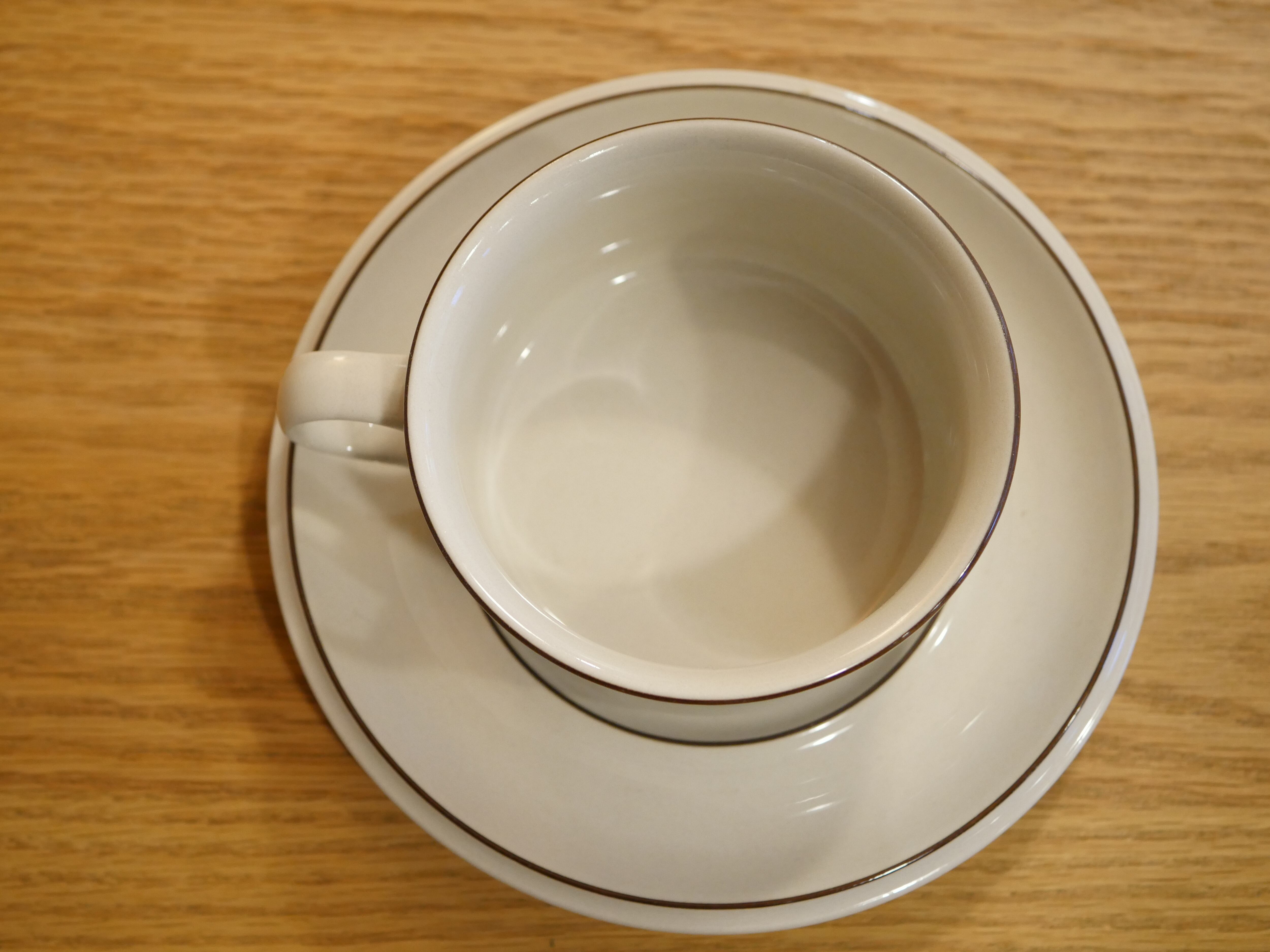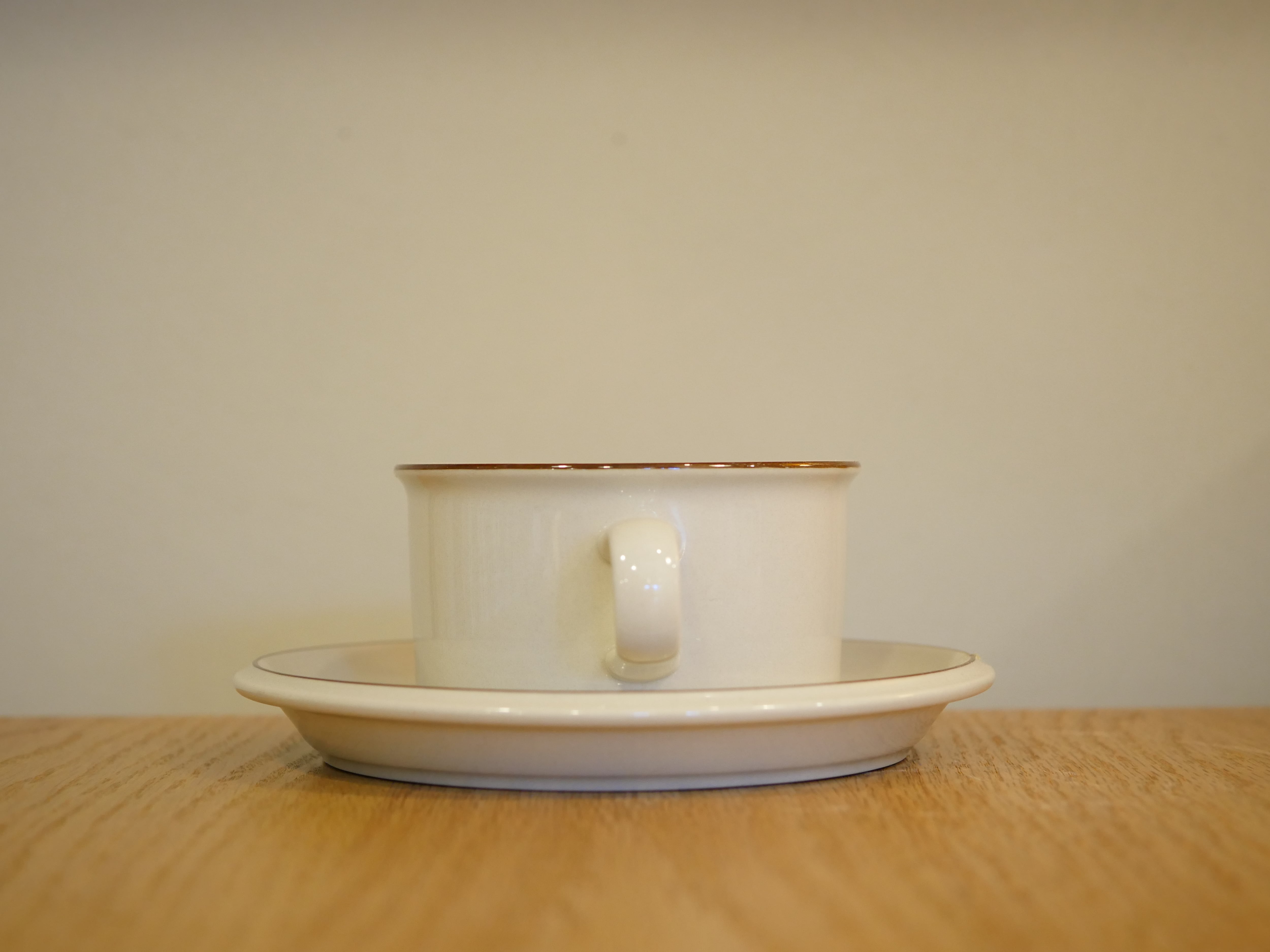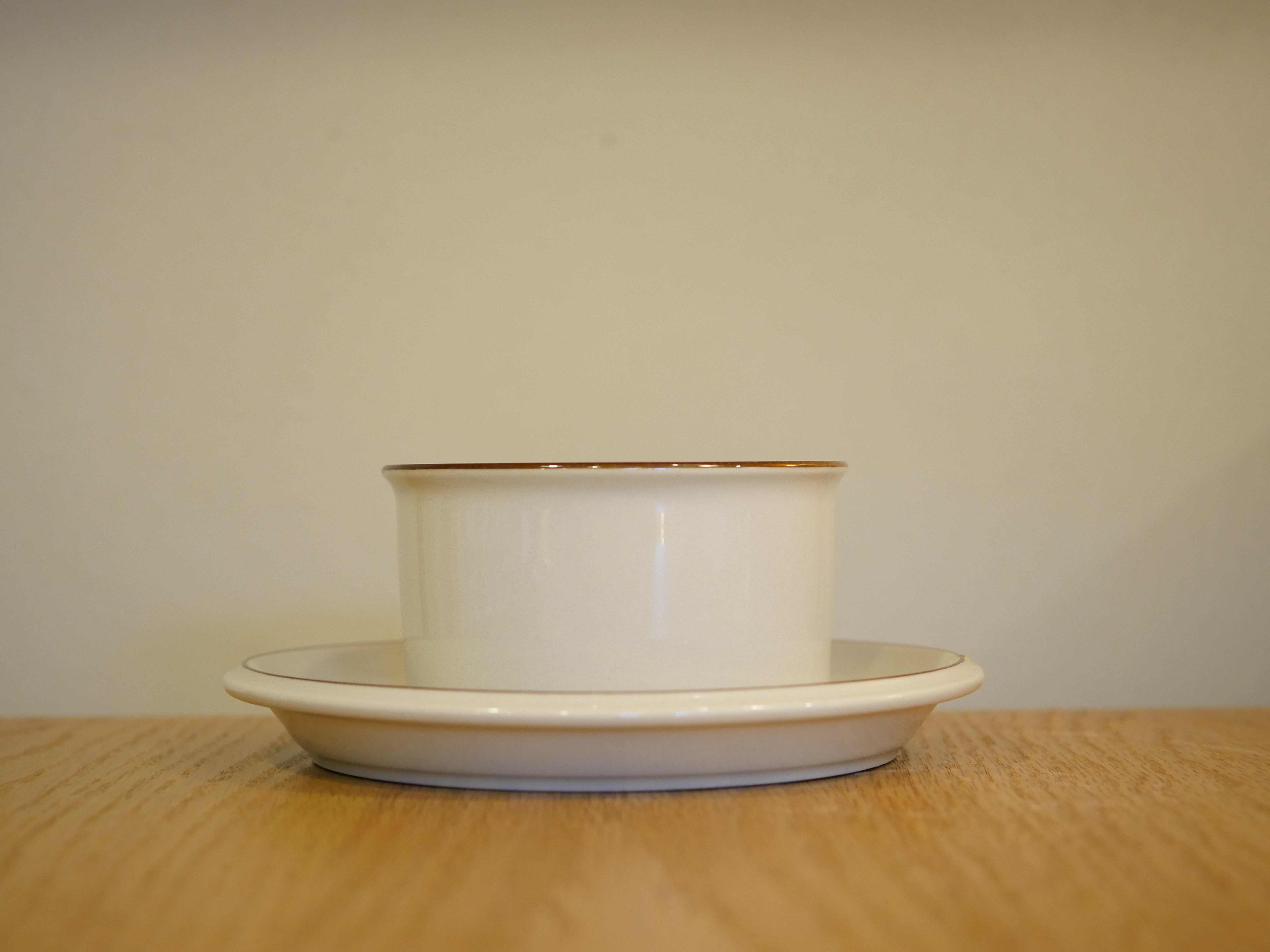 ラテン語でフィンランドを意味するこちらは淡いグレーに細いブラウンのラインだけでデザインされています。フィンランドの冬のように土の上に積もるたくさんの雪をイメージされているかのようです。とてもシンプルなデザインはどの食卓にも馴染み、自然と手に取りたくなる作品です。こちらは大きめのティーカップサイズです。