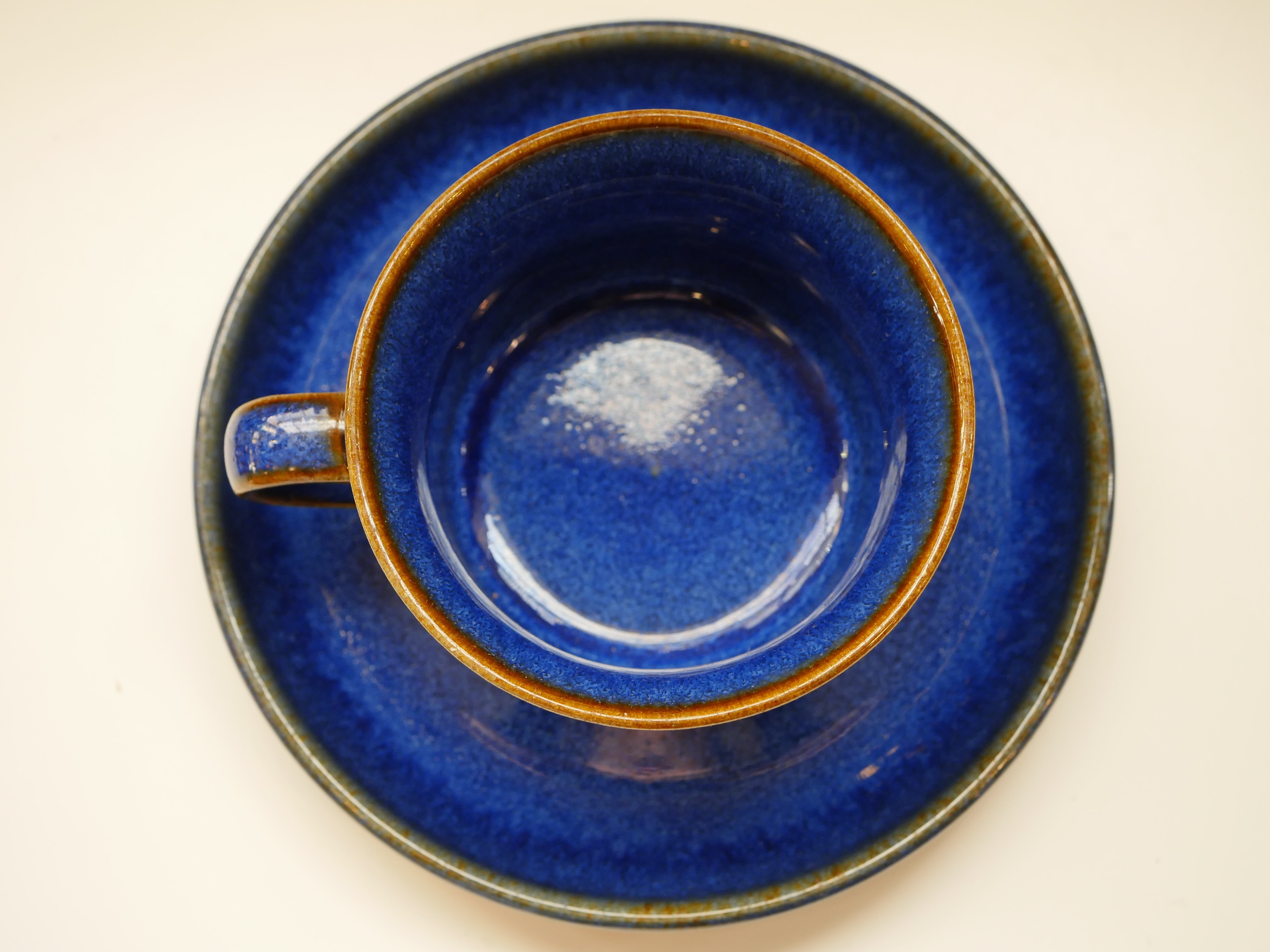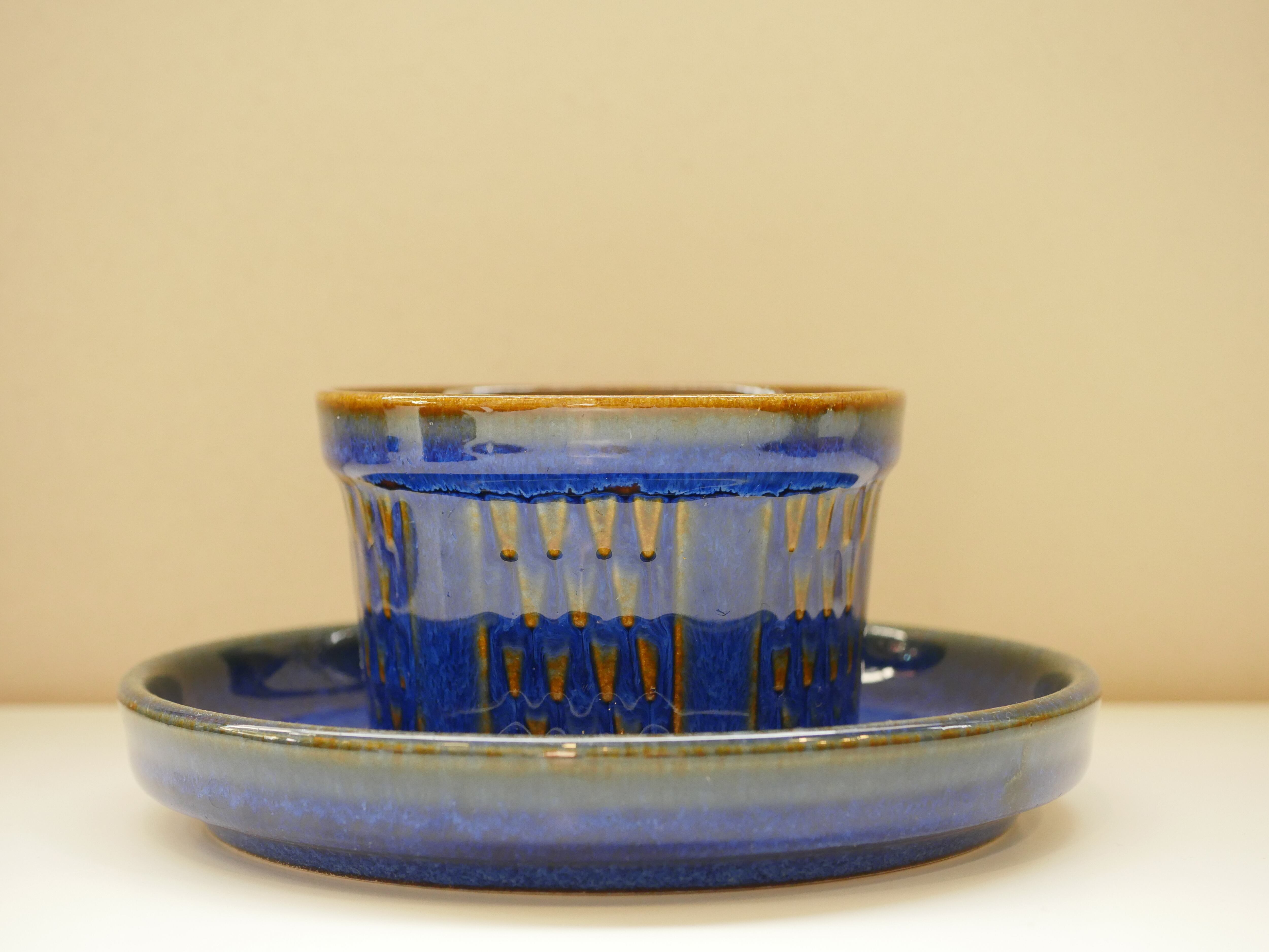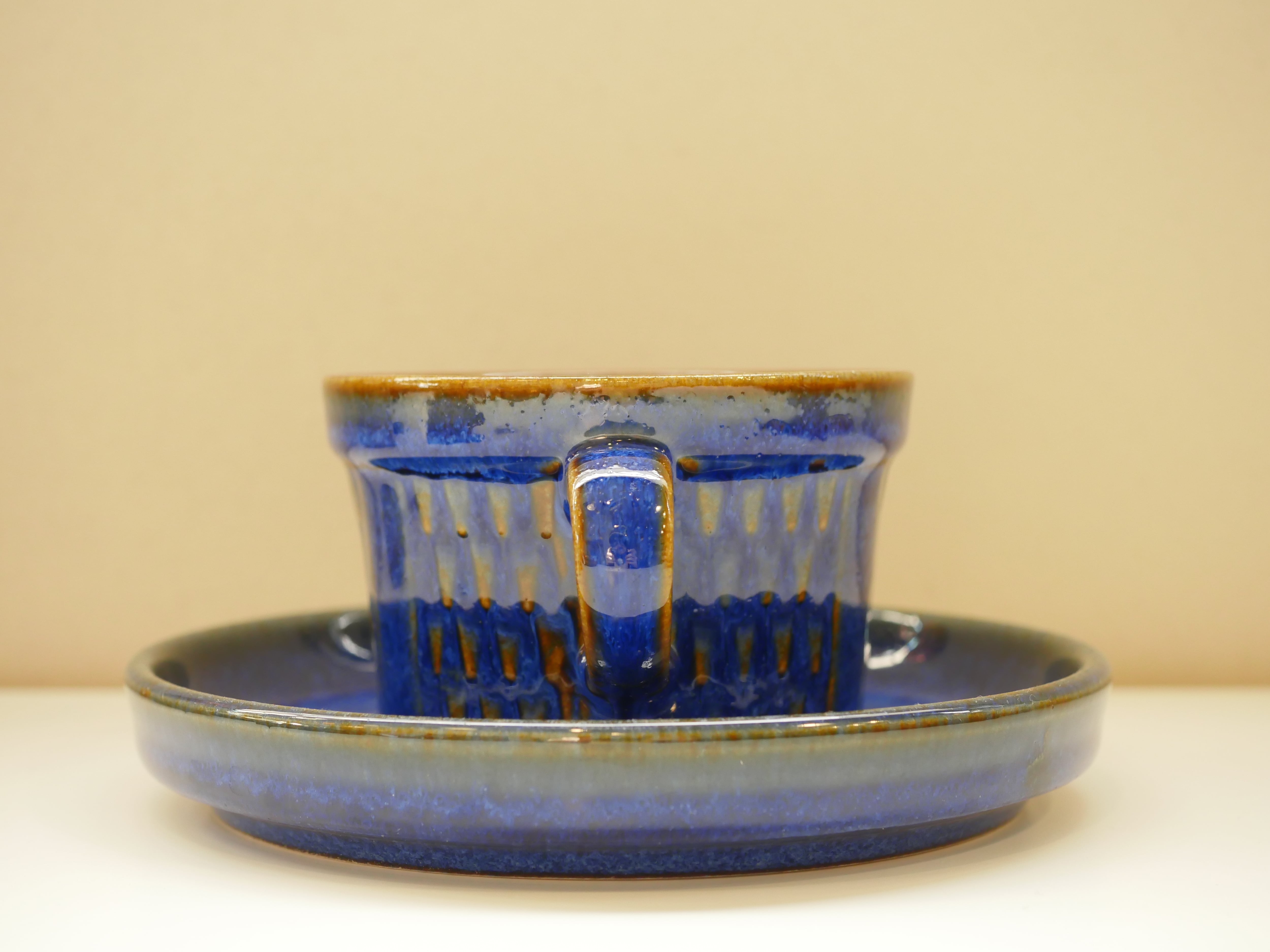 グラニットは花崗岩を意味します。鉱物のような青の深みに、岩を表現したような模様が焼成時に茶色へと変化し、一つ一つ手作りであることを強く感じさせる作品です。