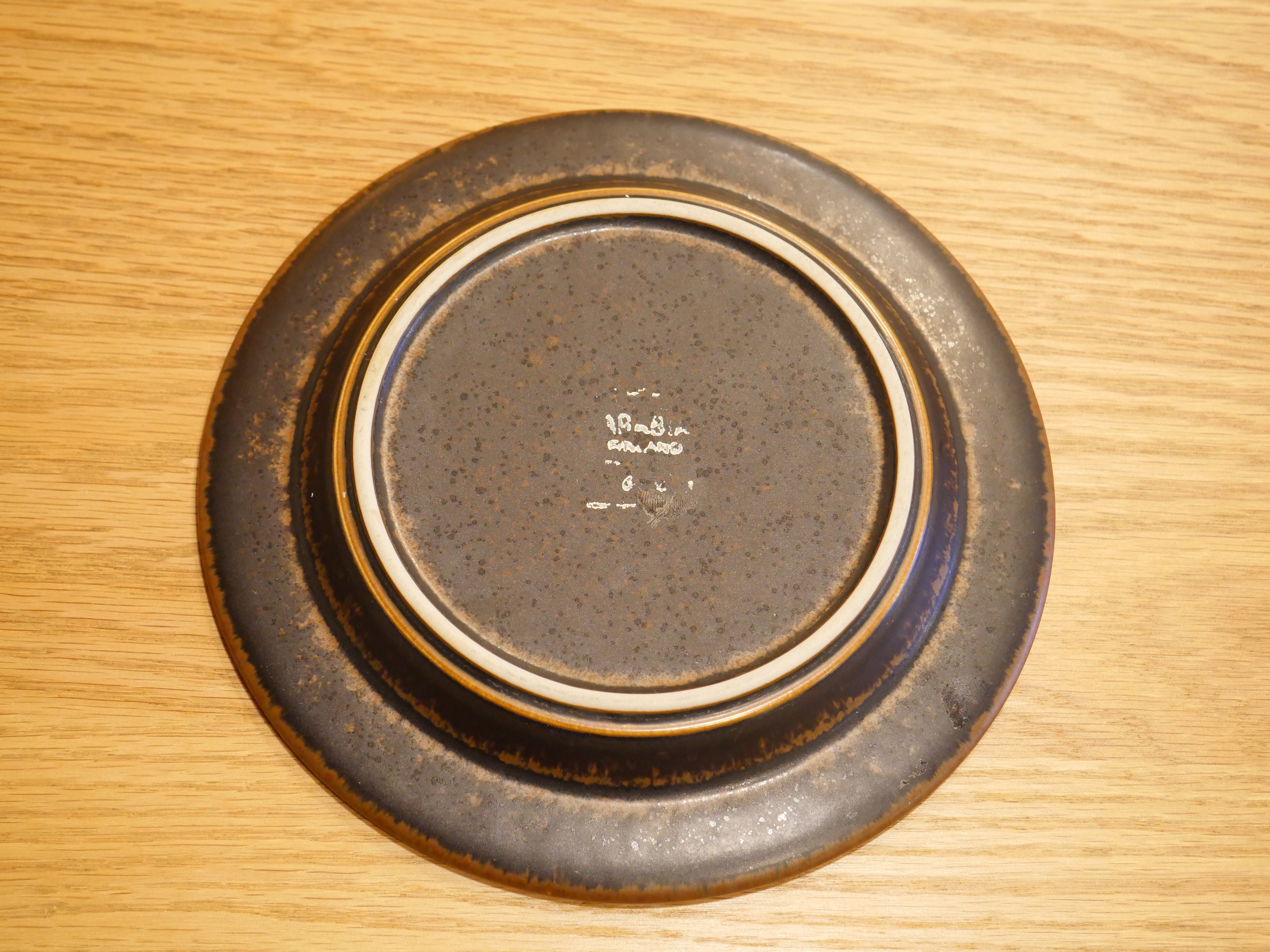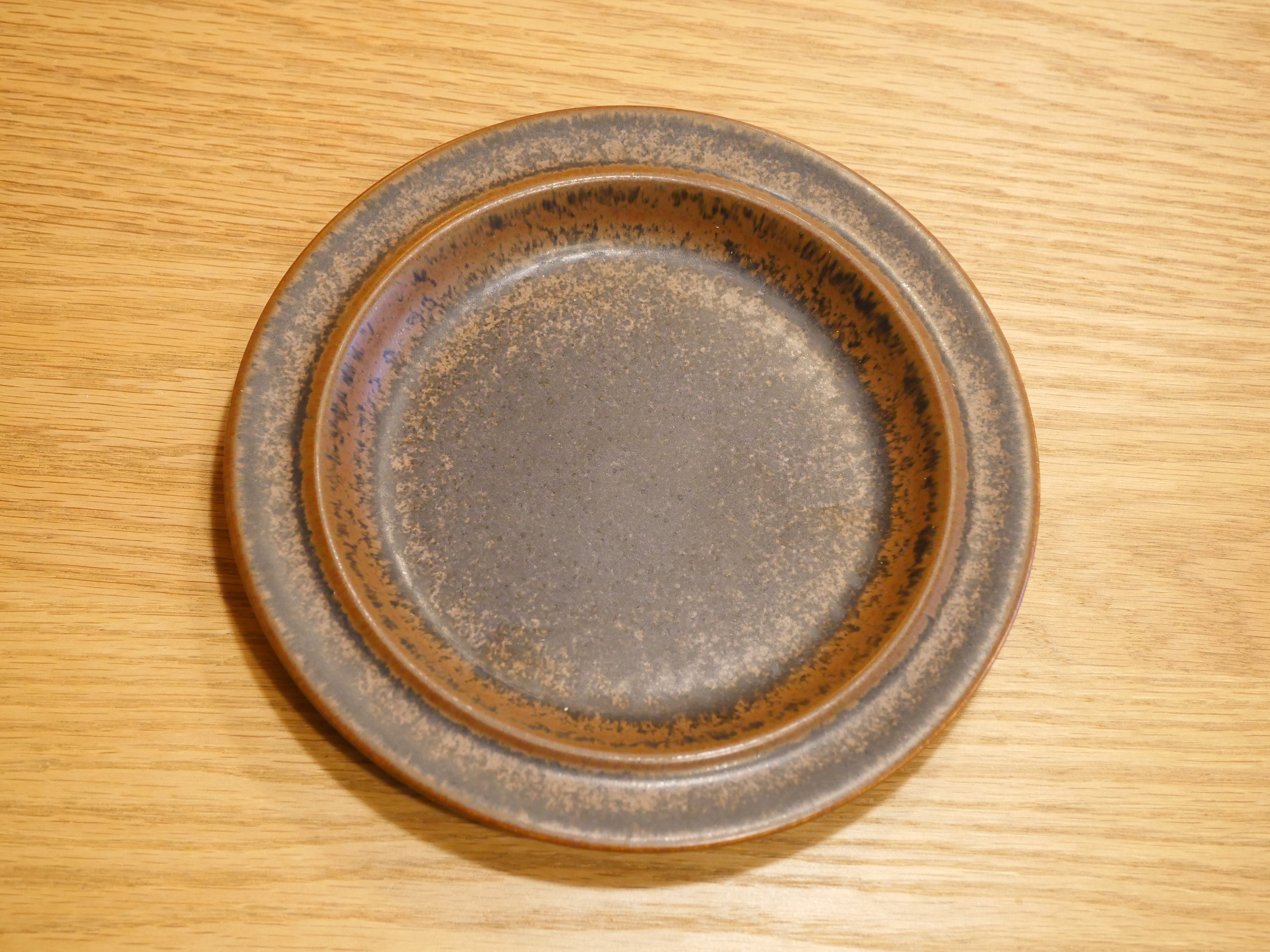 RUSKAとはフィンランド語で秋の色や紅葉を意味し、最も美しい言葉の一つです。茶色の釉薬の下に鉄粉を混ぜて作られています。そのため、作品一つ一つ、黒い斑点の量に違いが生まれ個性があります。素朴でありながらスモーキーな印象があり、アラビアでも最も人気の高いロングセラーシリーズで約40年もの間製造されました。