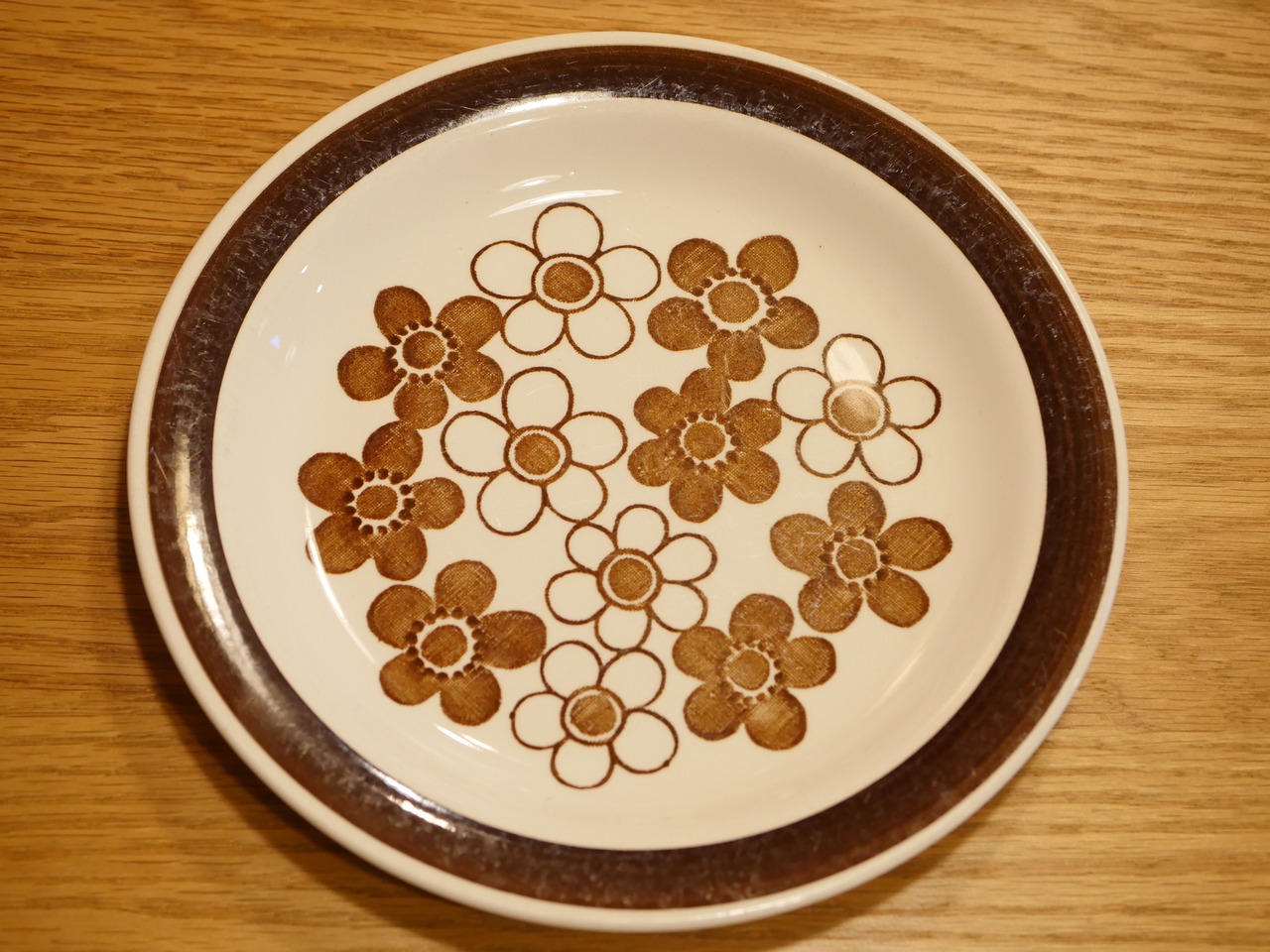 ブラウンとブルーの二色あり、こちらはブラウンです。シンプルな配色ですが、ファンが多く現地でもなかなか手に入らないシリーズです。不規則に散りばめられた手描きのような可愛らしい花はどこか懐かしいレトロな印象を受けます。