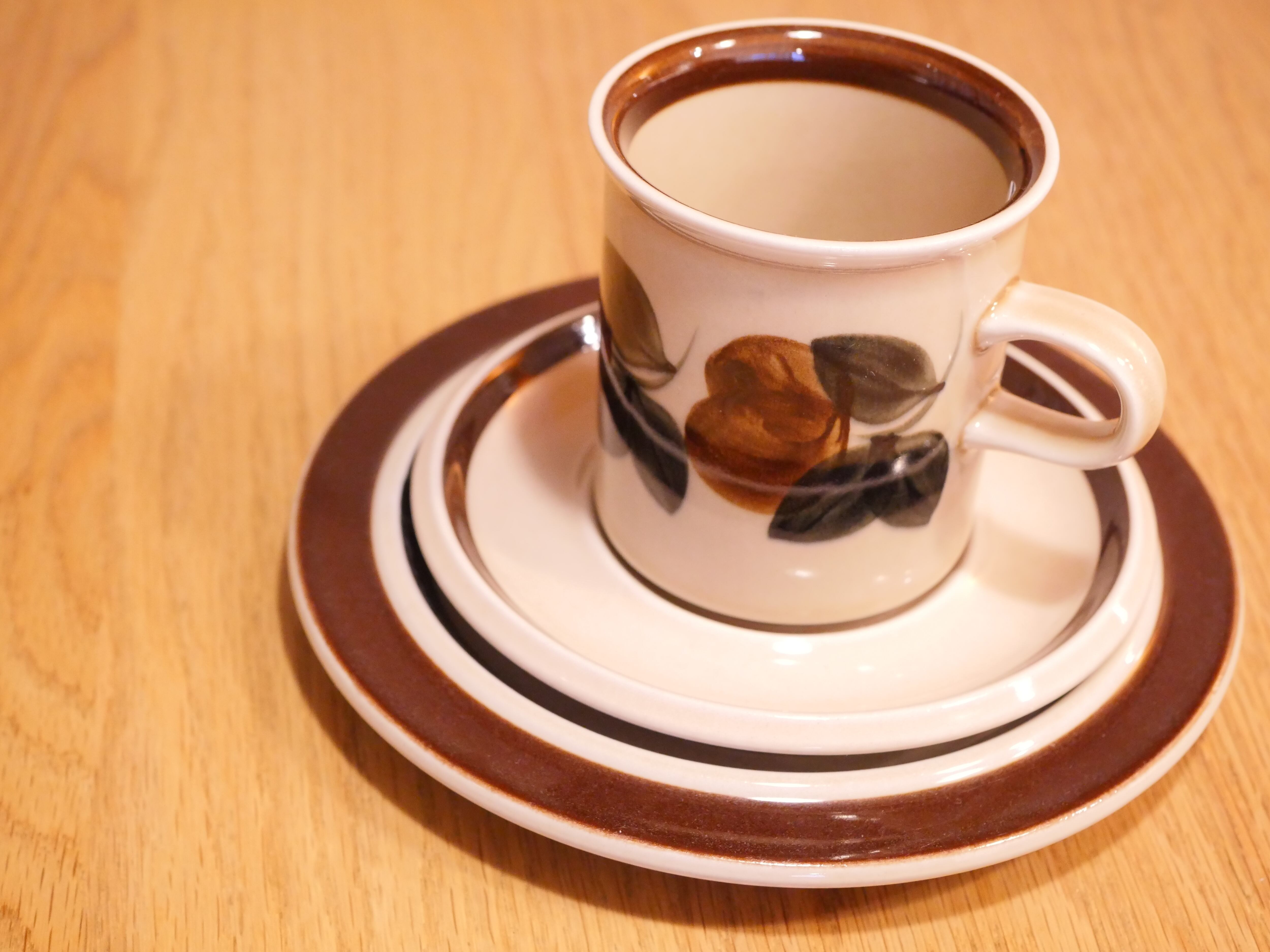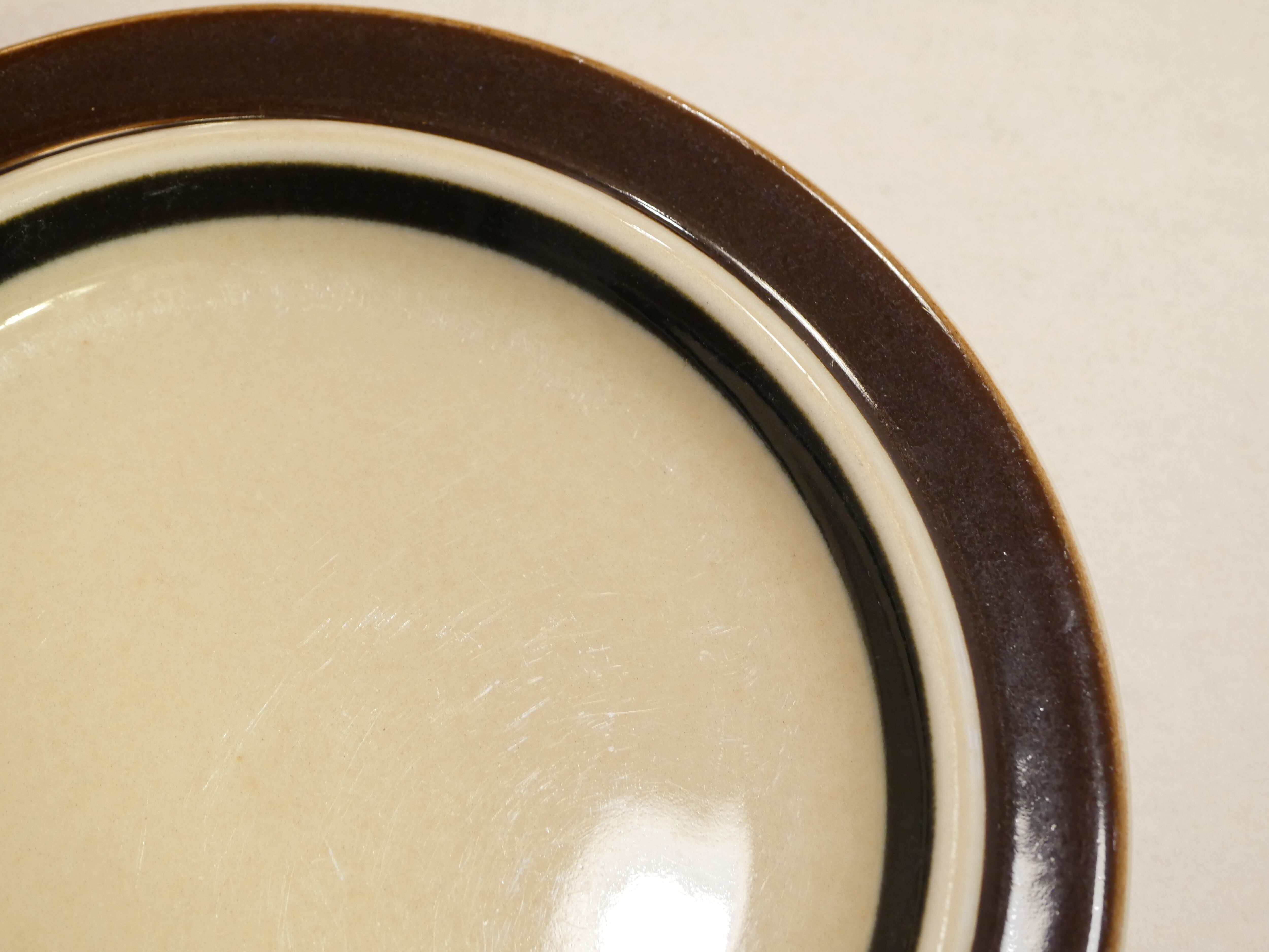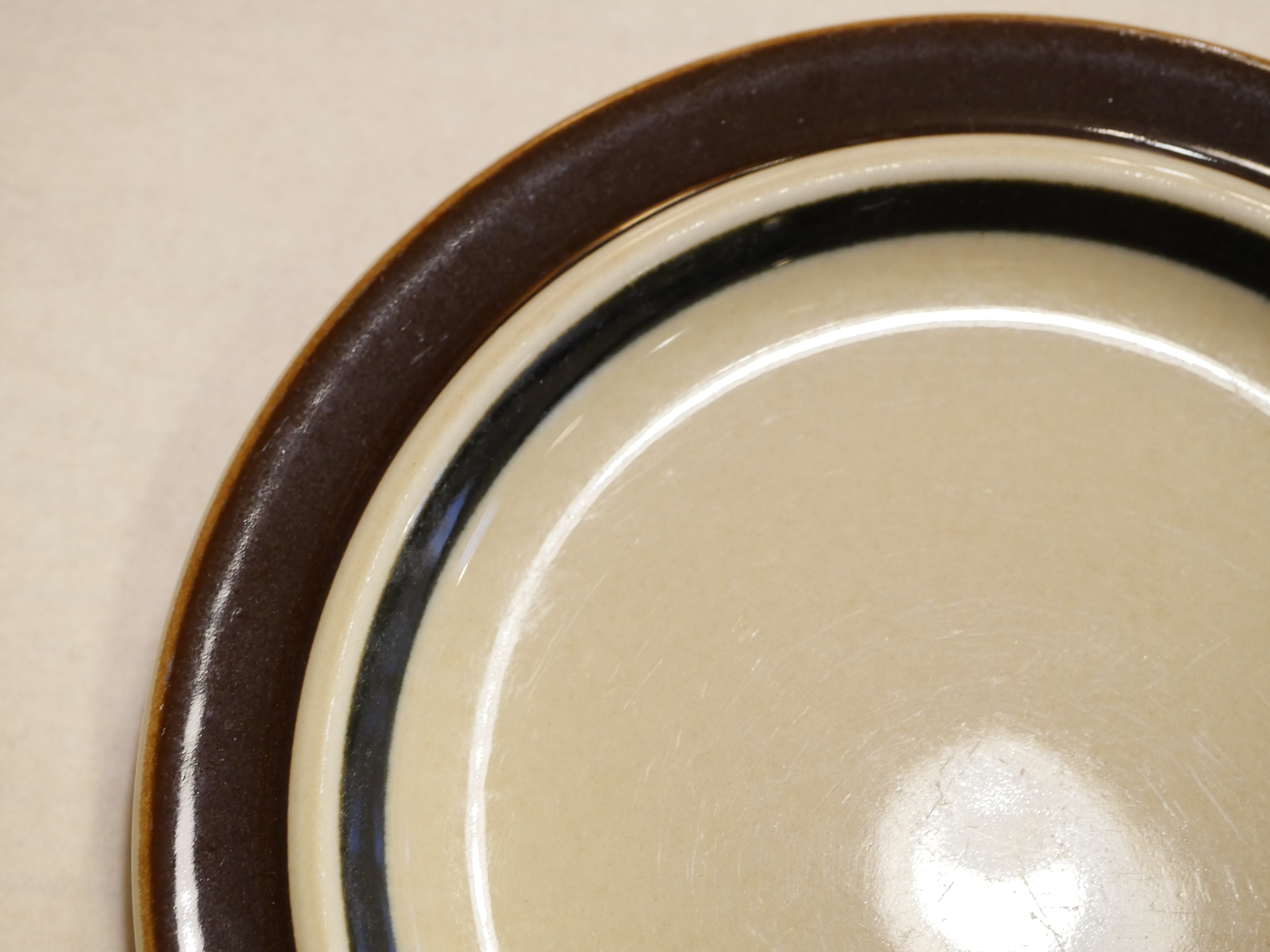フィンランドにあるアラビア社を代表するルイヤシリーズです。アラビア社を代表する2人の女性デザイナーによる作品です。ミルクティーベージュにブラウンとブラックのラインが落ち着いた風合いで落ち着いた風合いで和洋問わず使うことができます。こちらはコーヒーカップと合わせるとトリオになる少し小さめのサイズです。