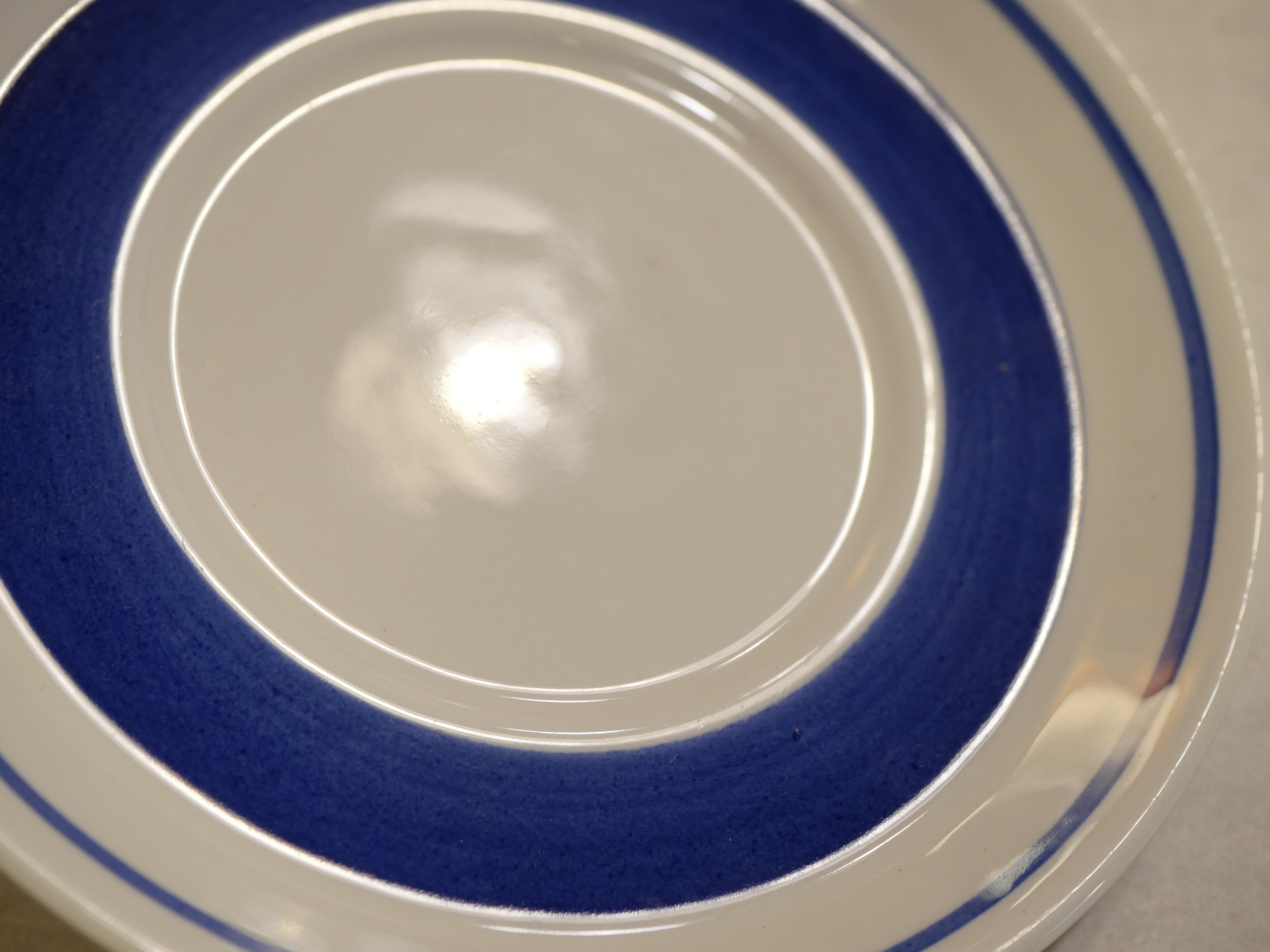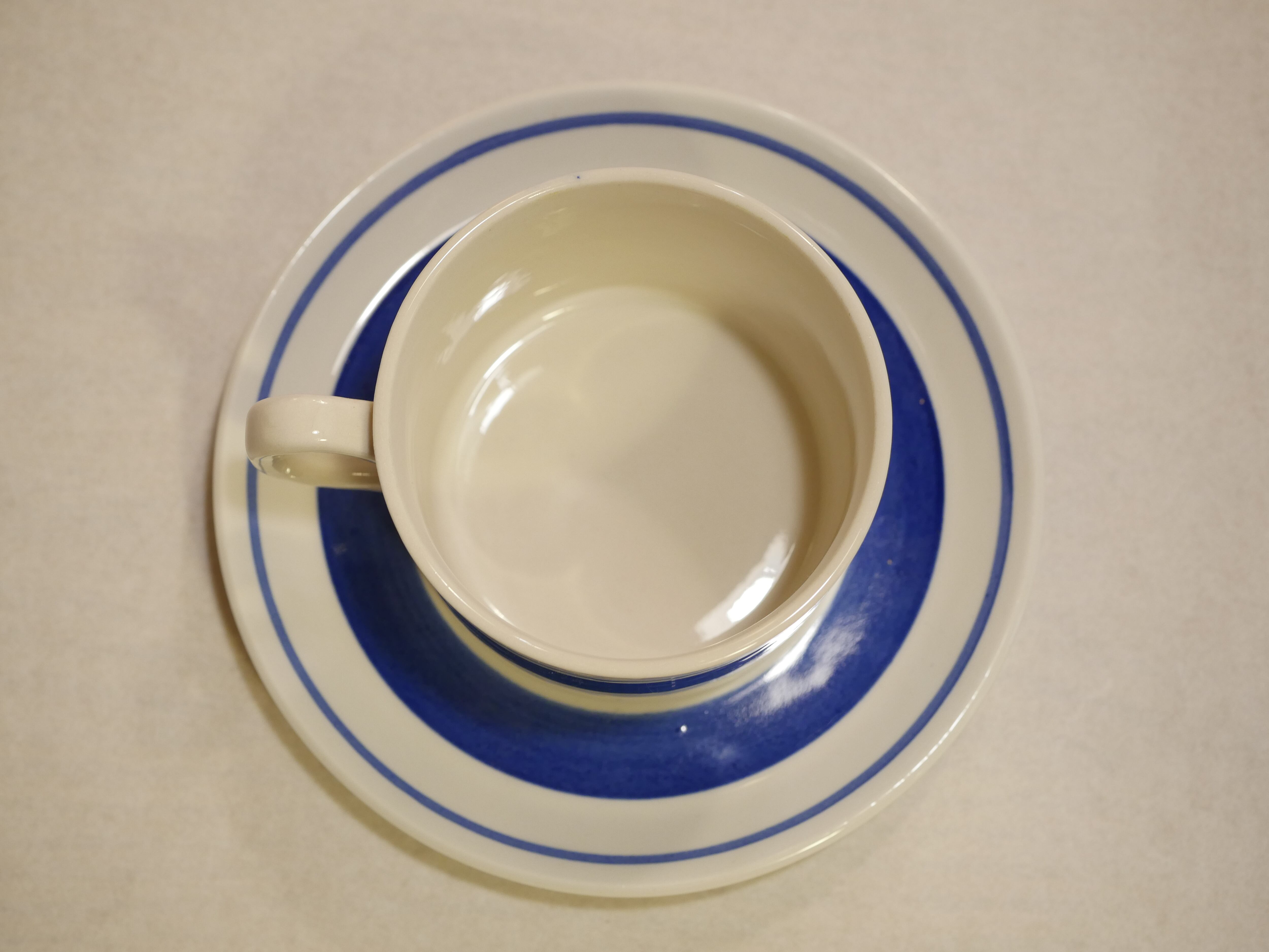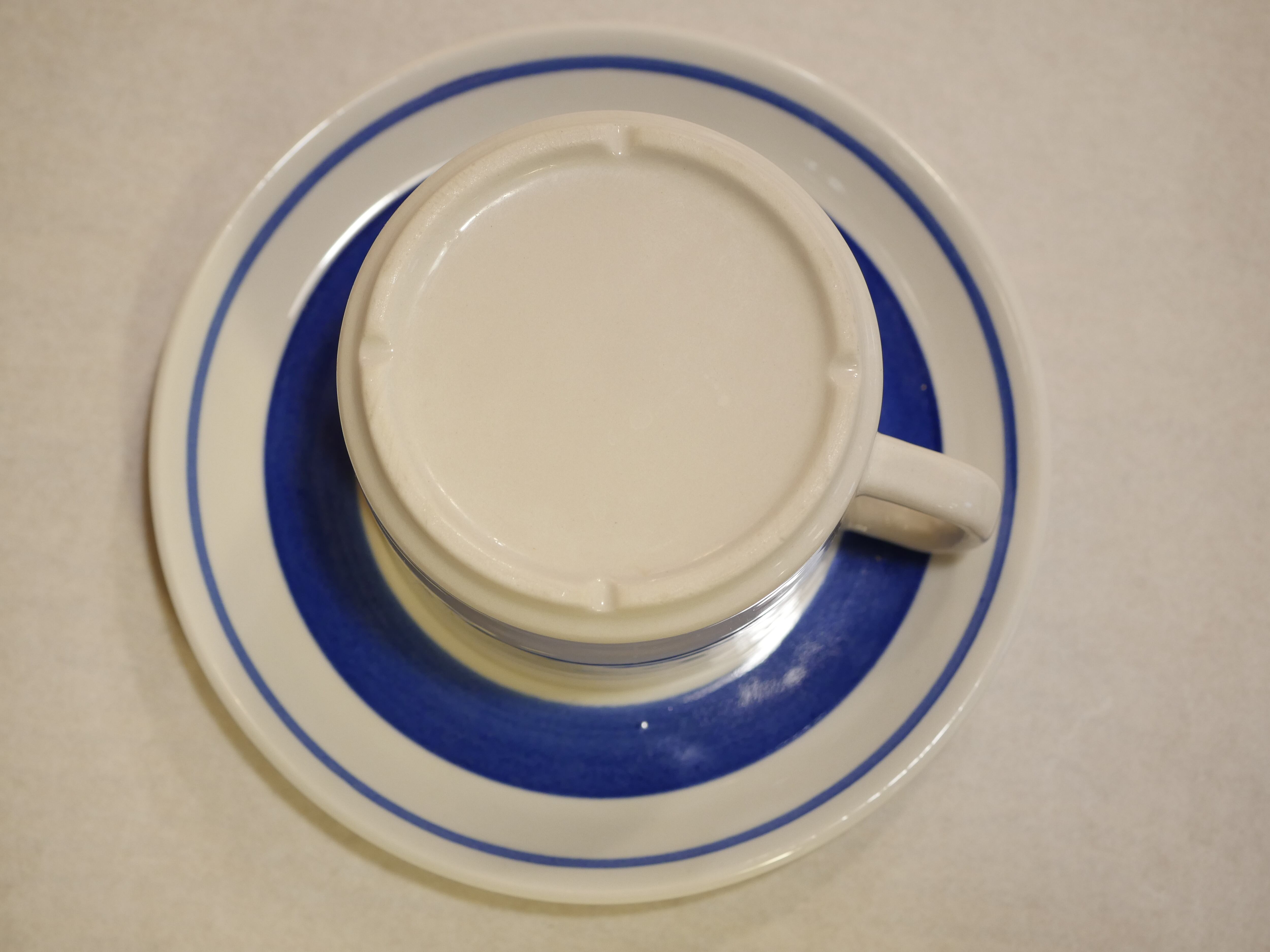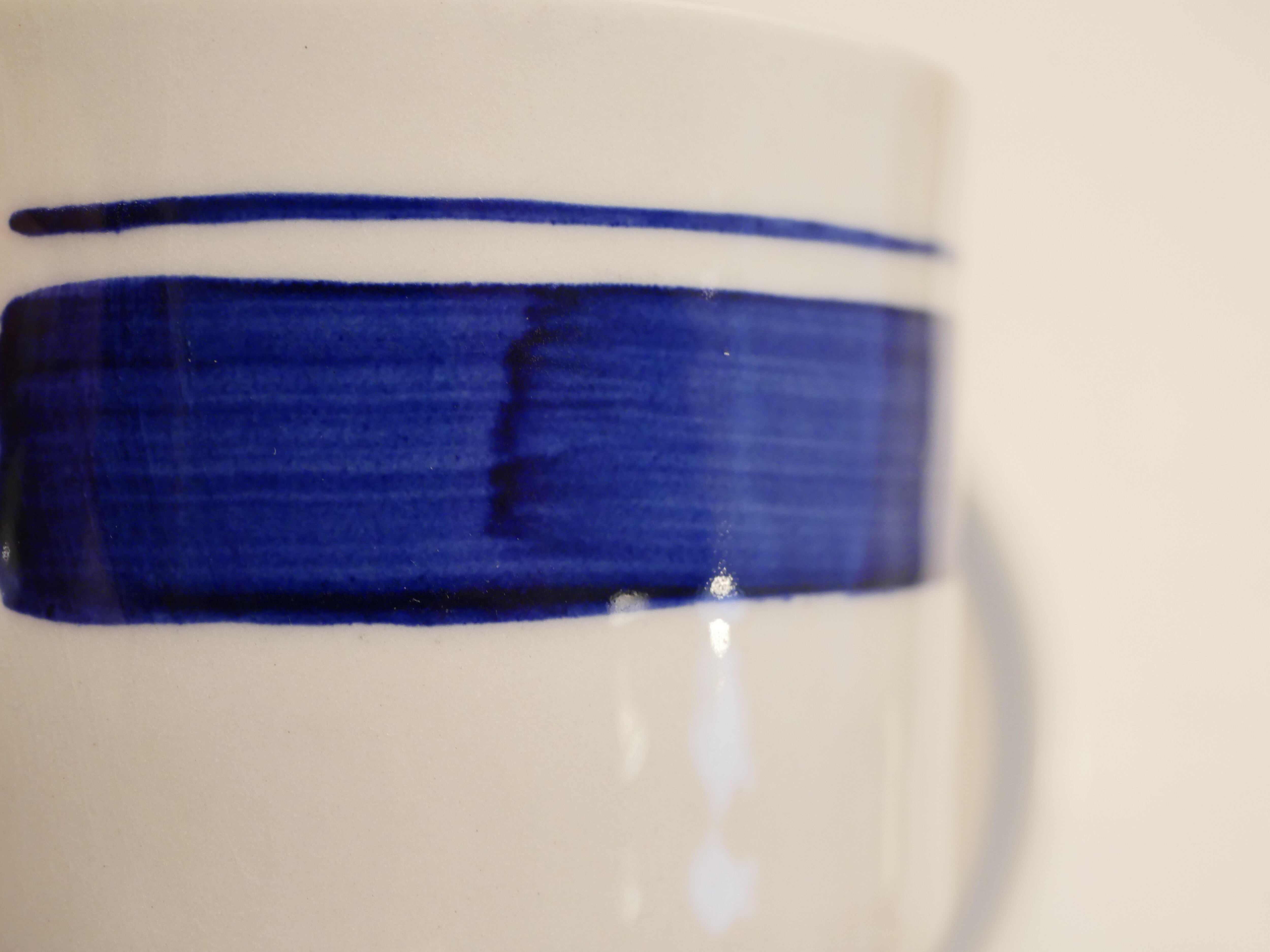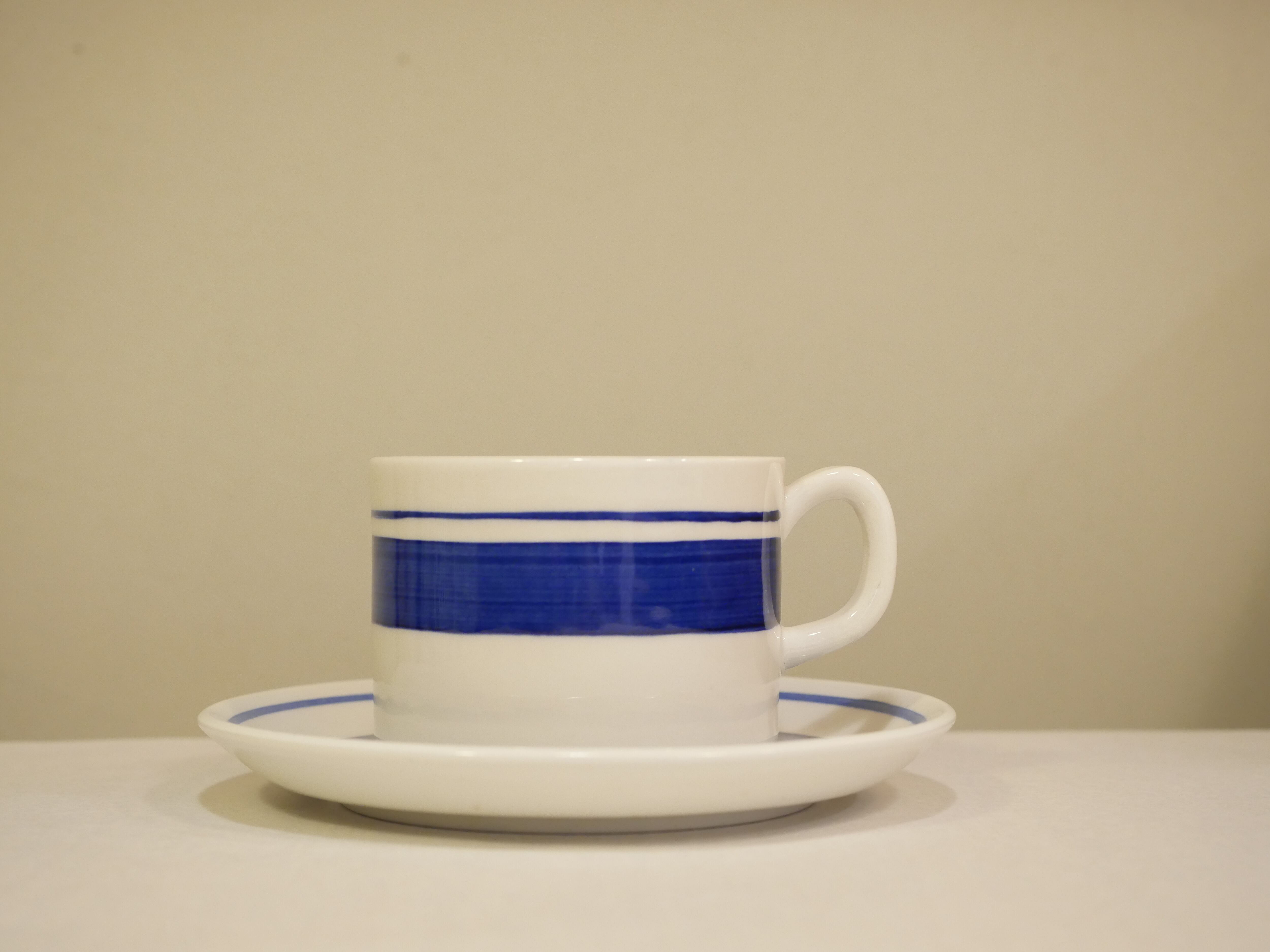 マリンとはスウェーデン語で海を意味する言葉。名前の通り爽やかなマリンブルーがボーダー柄のようにハンドペイントで描かれています。整然と引かれた細いラインが華奢で、ハンドペイントの柔らかい印象も相まって可愛らしい印象があります。こちらは小さいサイズのカップになります。