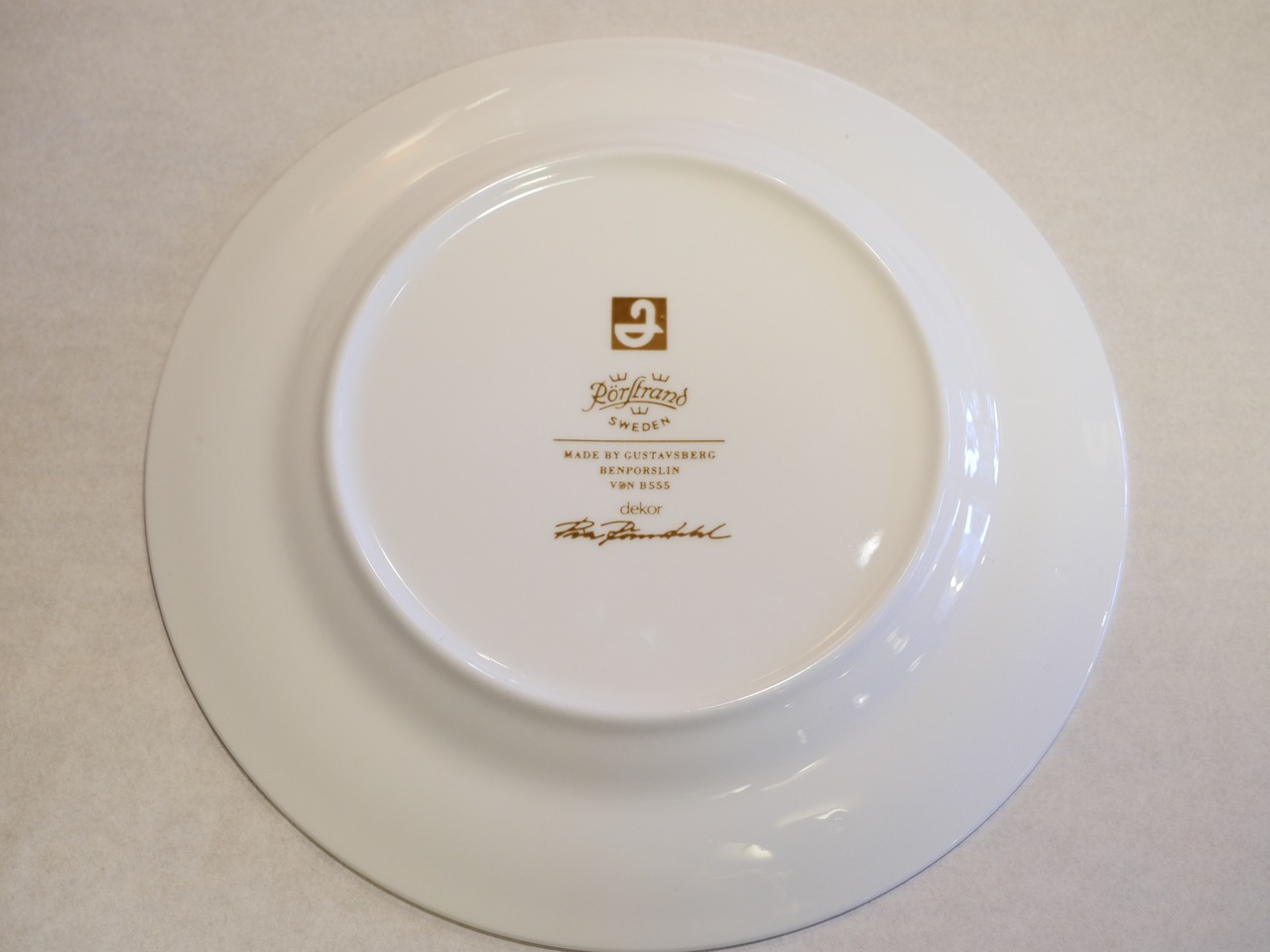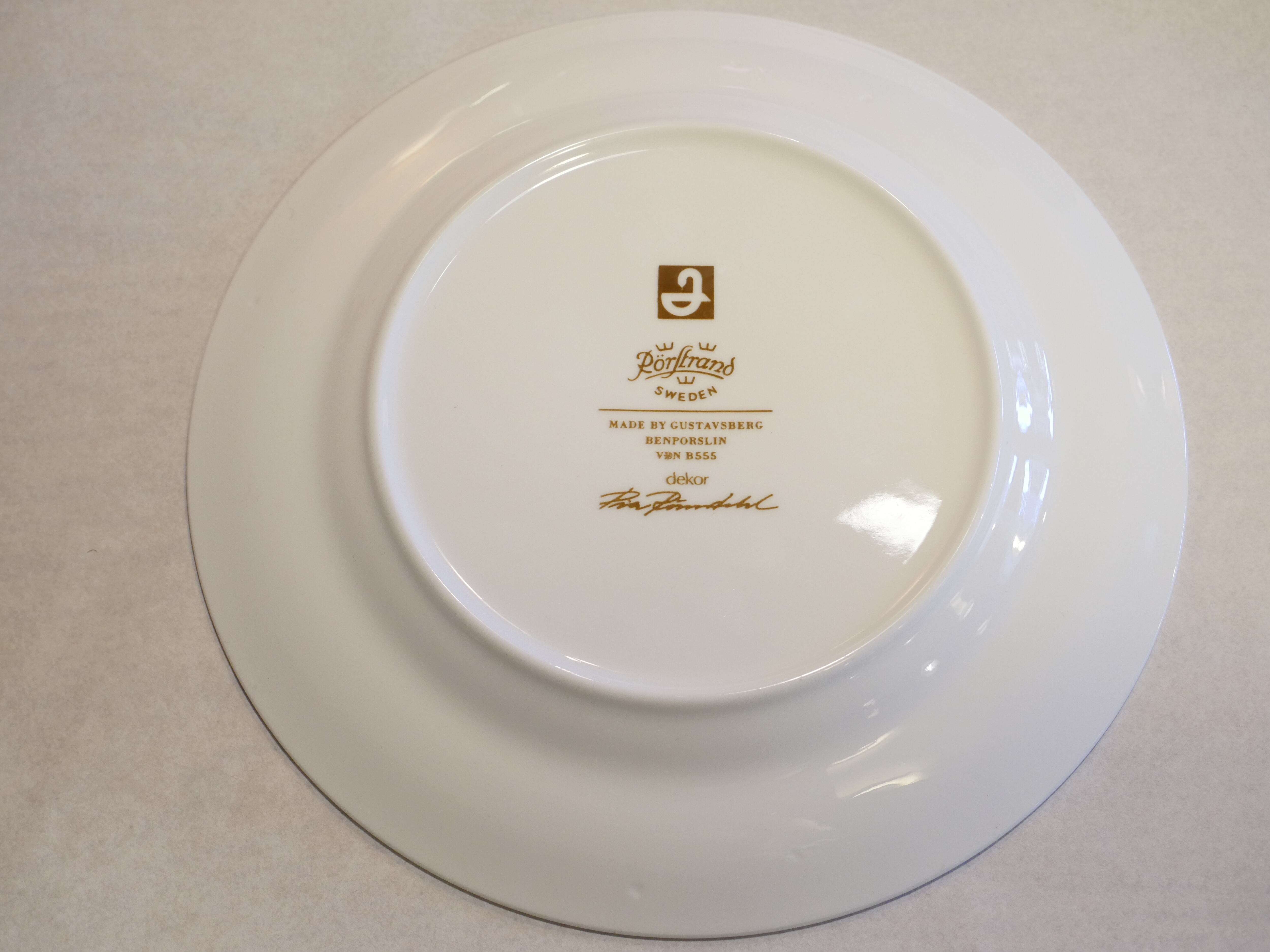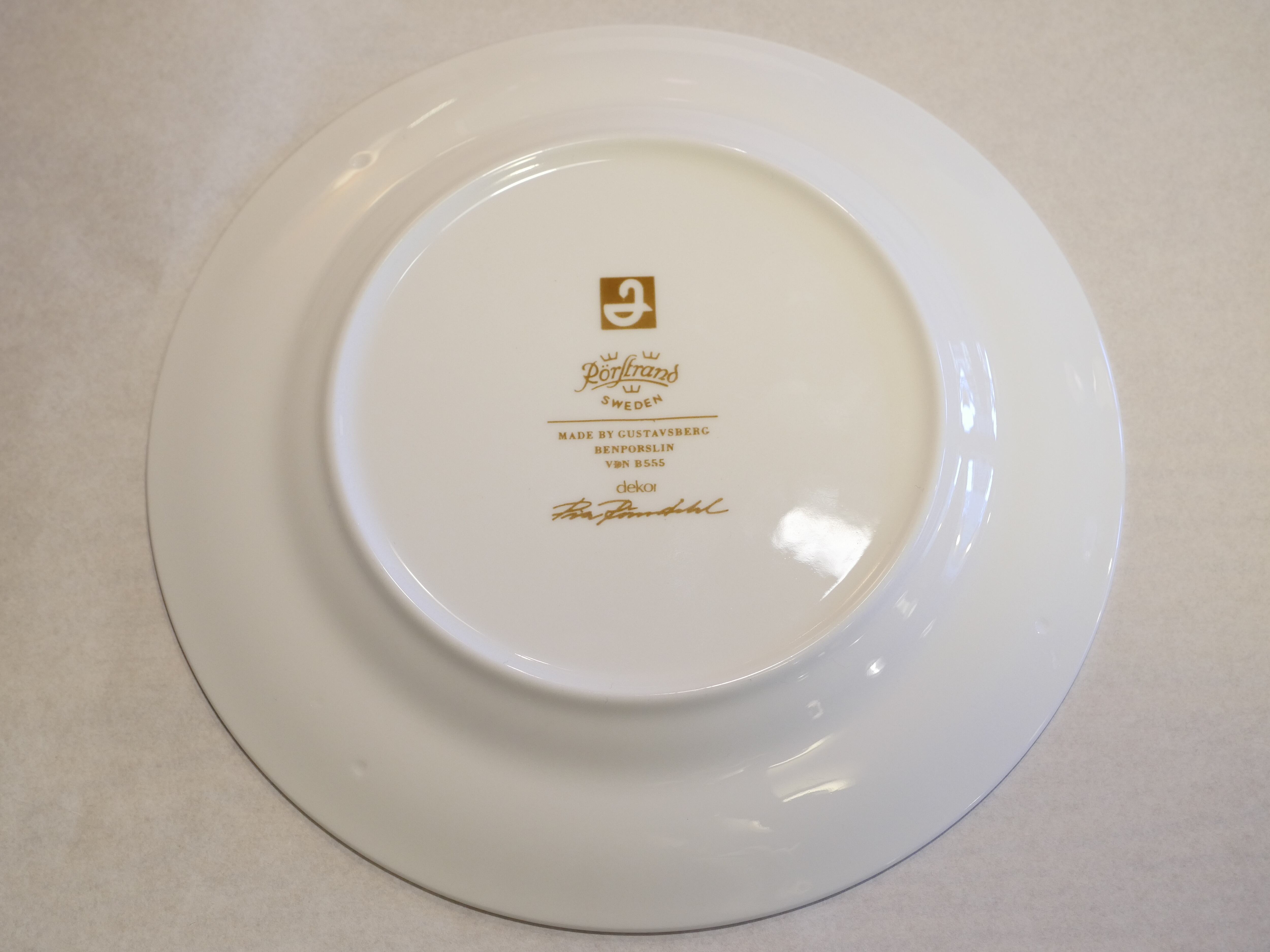 こちらのプレートはグスタフスベリとロールストランド両方の名前がバックに入っています。実はこの時期にデザイナーのピア・ルンダールがグスタフスベリからロールストランドに移籍したため、このように両方入っているものが存在しています。当店では製作期間が長いグスタフスベリとして紹介させていただいています。