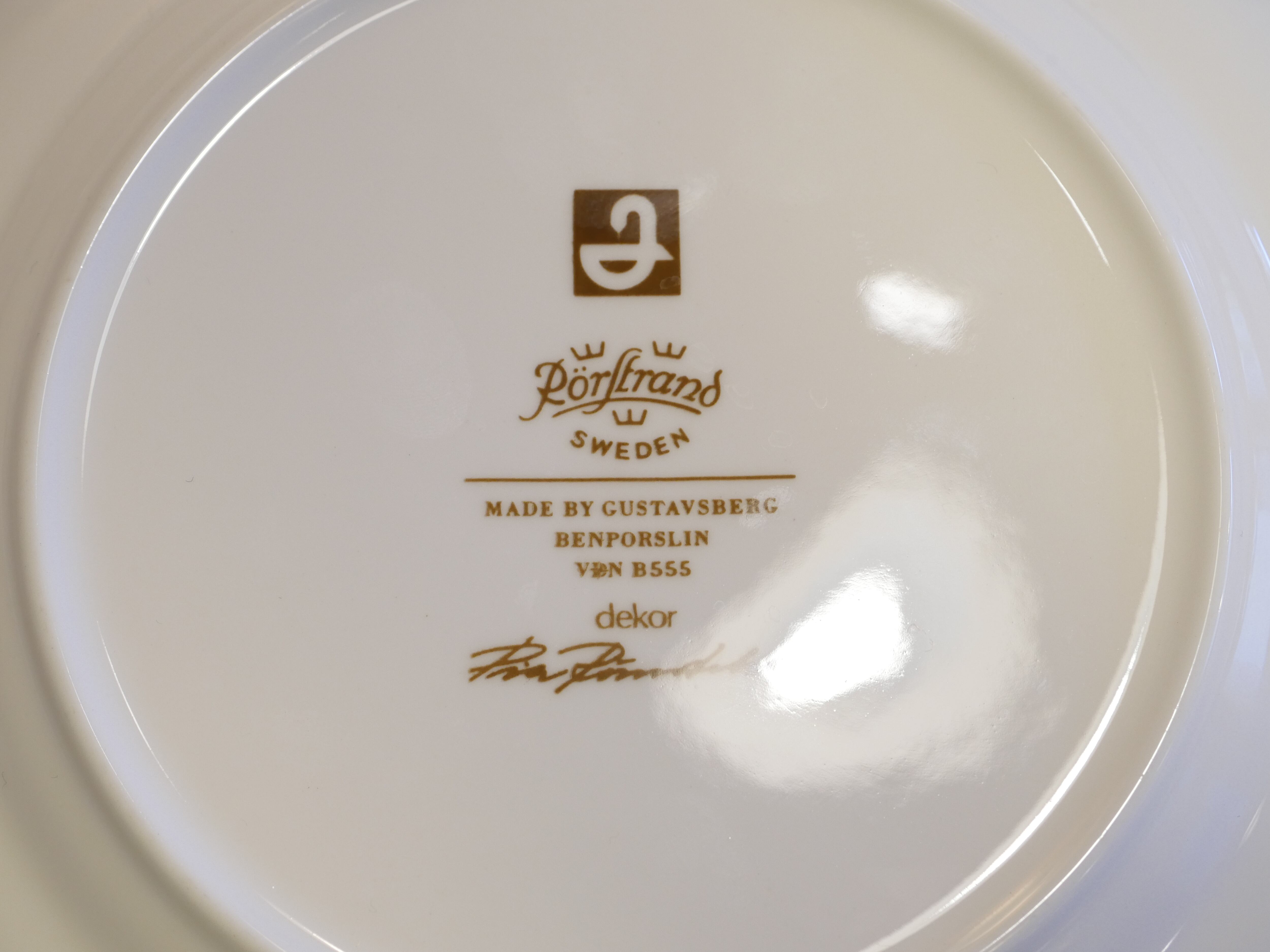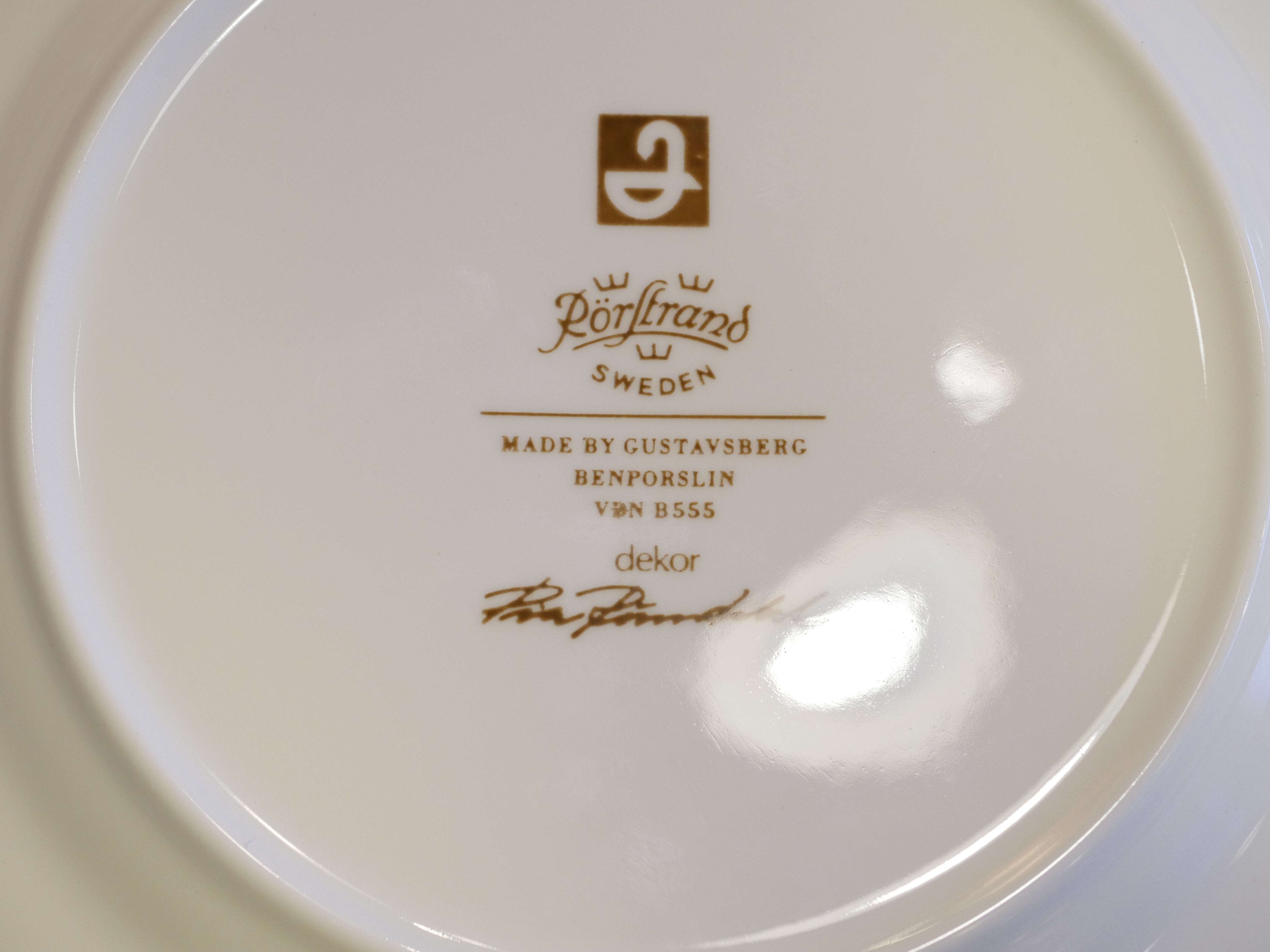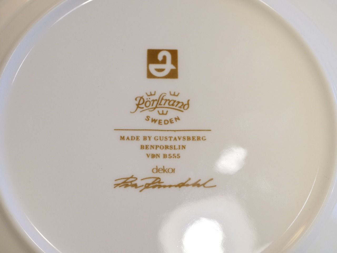 こちらのプレートはグスタフスベリとロールストランド両方の名前がバックに入っています。実はこの時期にデザイナーのピア・ルンダールがグスタフスベリからロールストランドに移籍したため、このように両方入っているものが存在しています。当店では製作期間が長いグスタフスベリとして紹介させていただいています。
