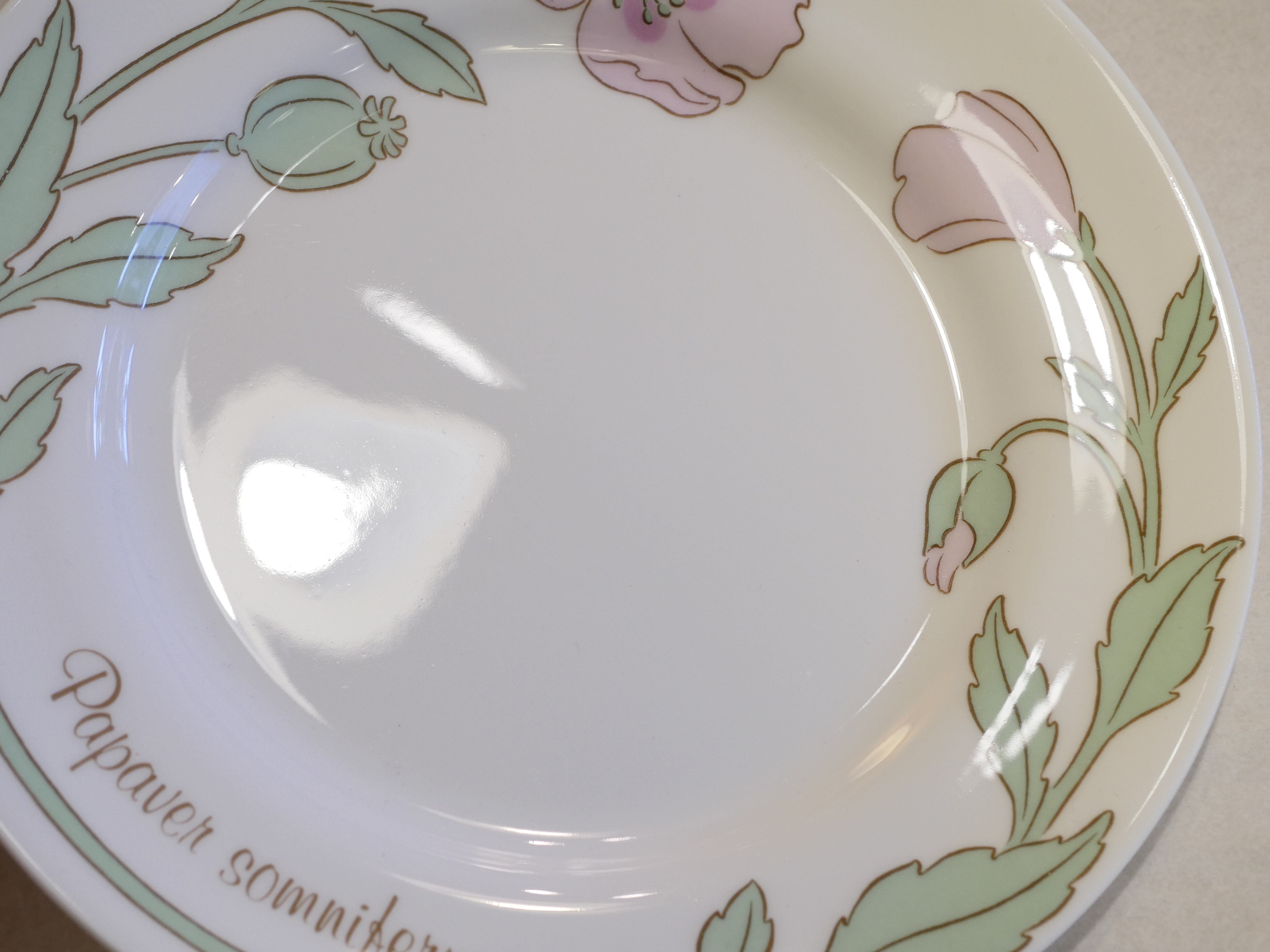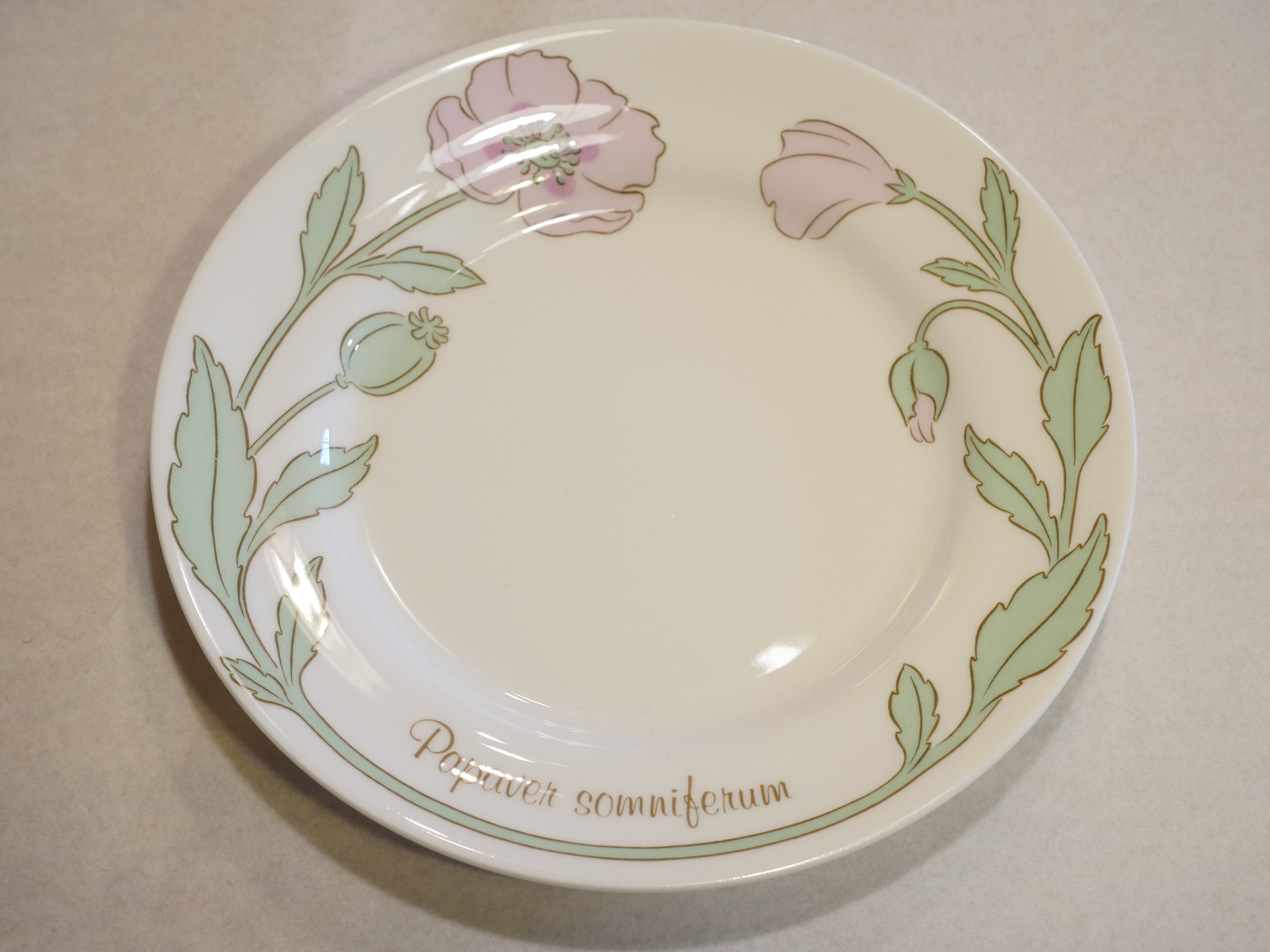 スウェーデンのグスタフスベリ社によるアポテケット。当時国営であった薬局(=apoteket)のためにデザインされました。デザインに用いられている花はオダマキ、ジギタリス、ポピーの3種類。どれも薬草として用いられるものです。