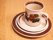 フィンランドにあるアラビア社を代表するルイヤシリーズです。アラビア社を代表する2人の女性デザイナーによる作品です。ミルクティーベージュにブラウンとブラックのラインが落ち着いた風合いで落ち着いた風合いで和洋問わず使うことができます。こちらはコーヒーカップと合わせるとトリオになる少し小さめのサイズです。