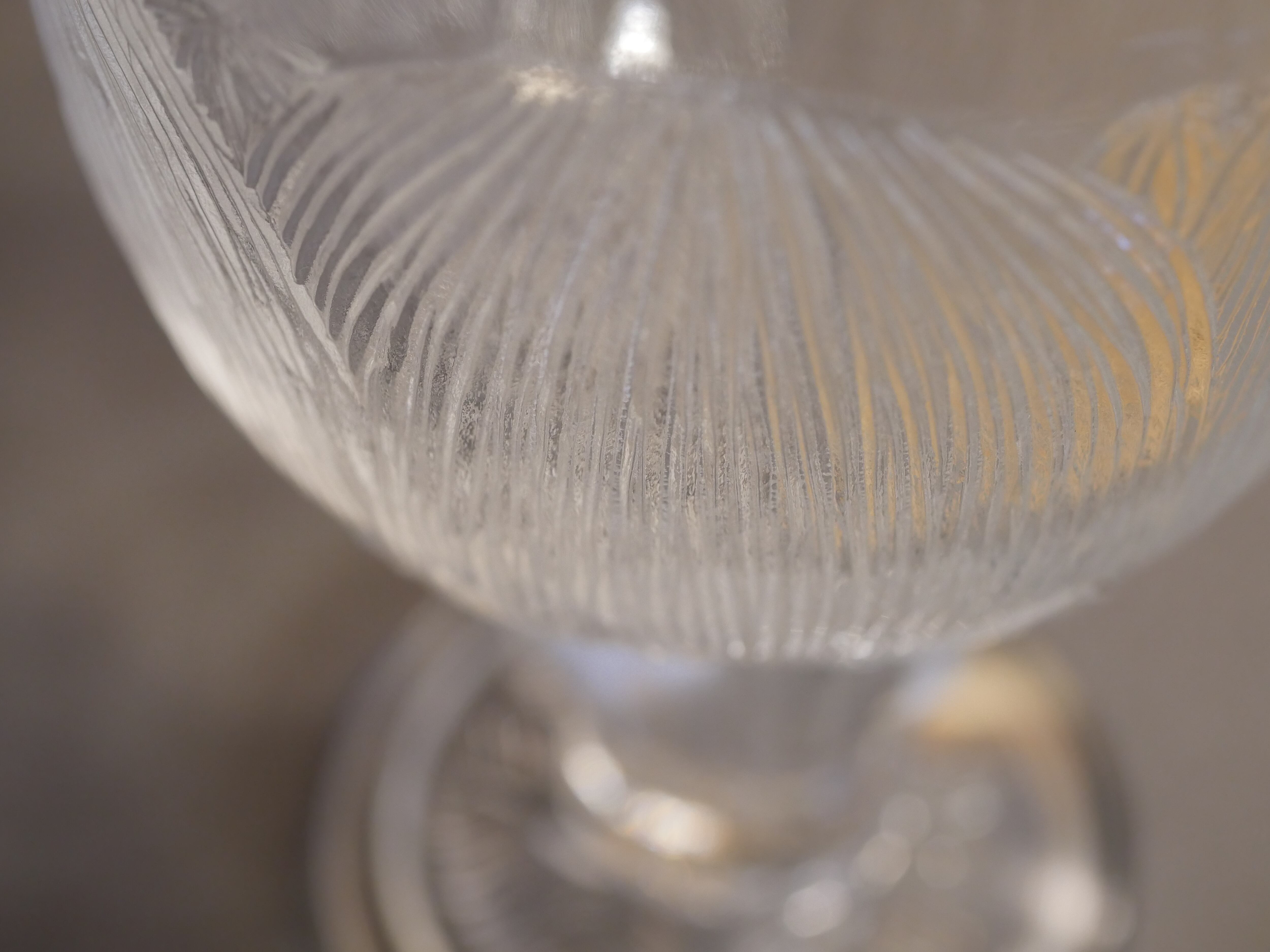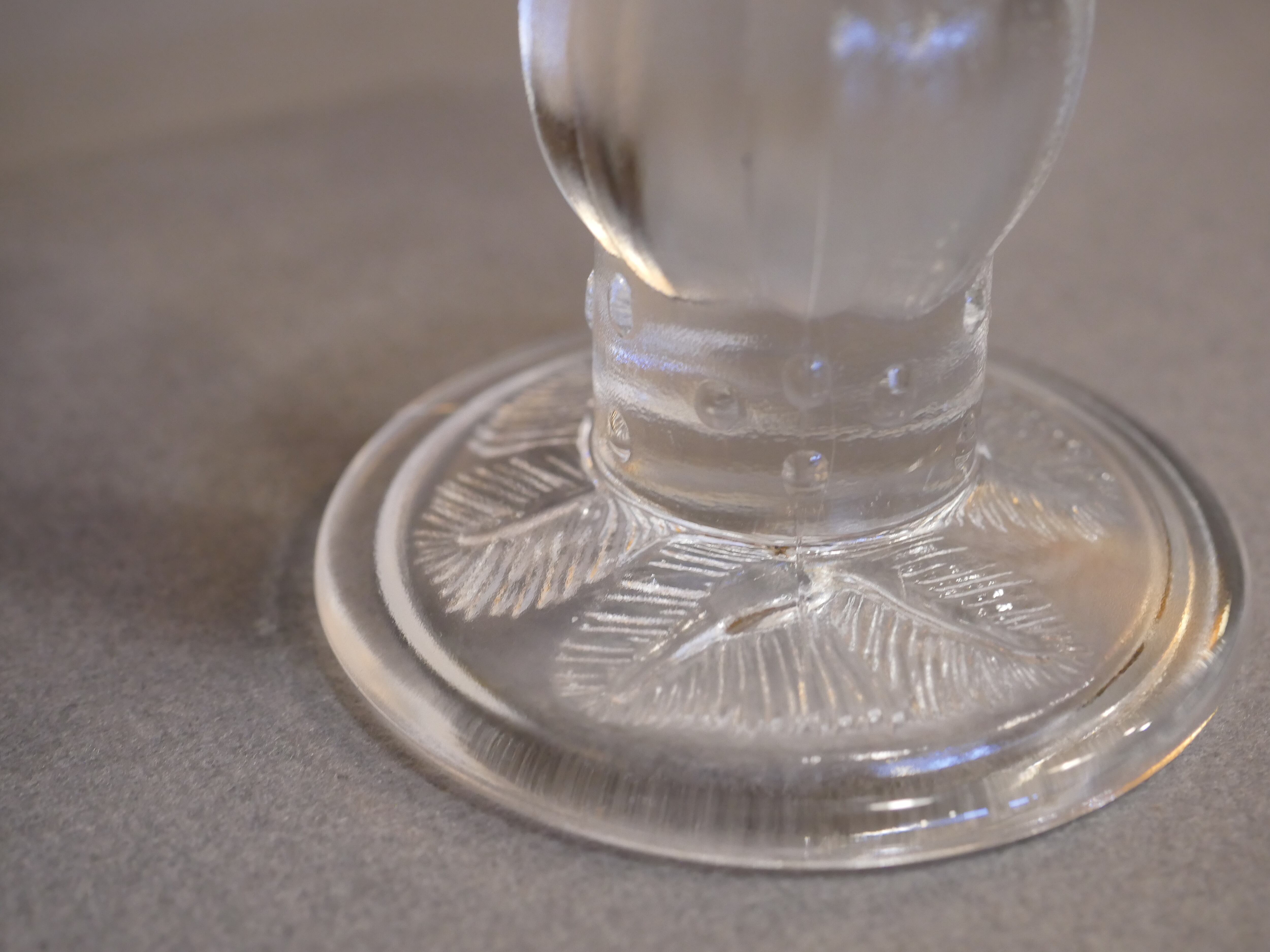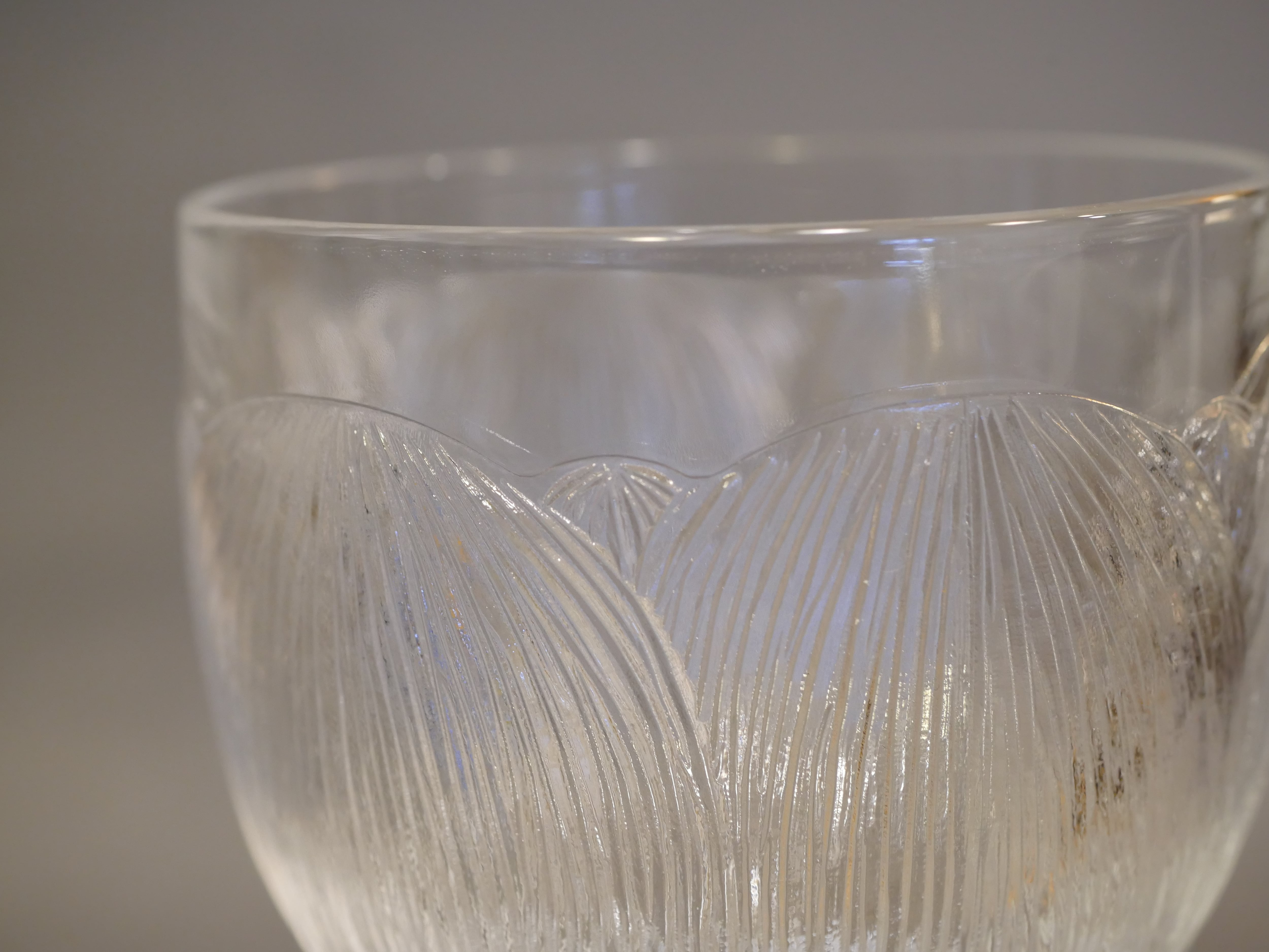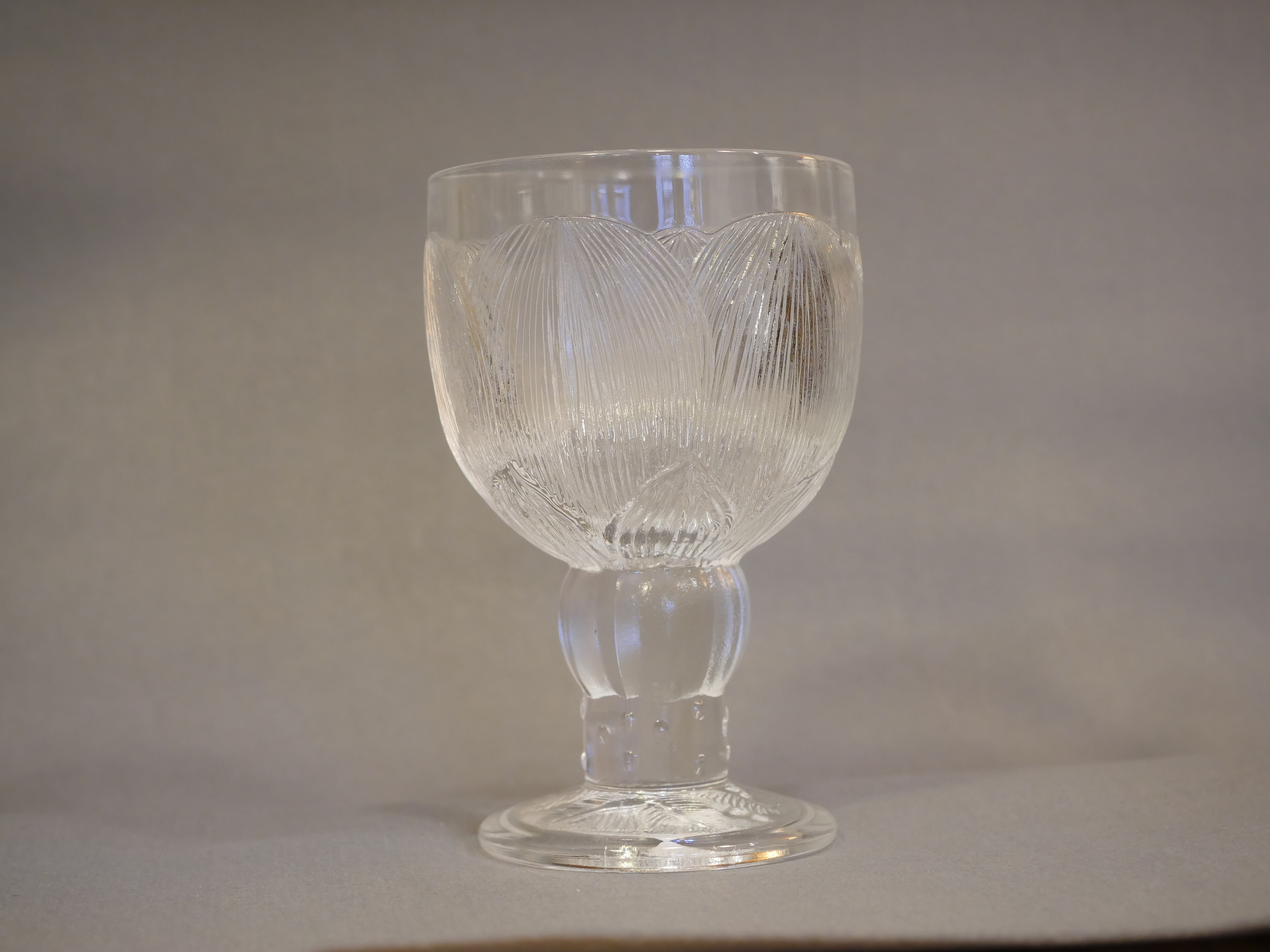 手に持つとずっしりとした重量感があり、安定して立っています。こちらはワイングラスサイズです。芍薬の花言葉にある「つつましさ、謙虚」のように主張しすぎないデザインは使い勝手も良さそうです。