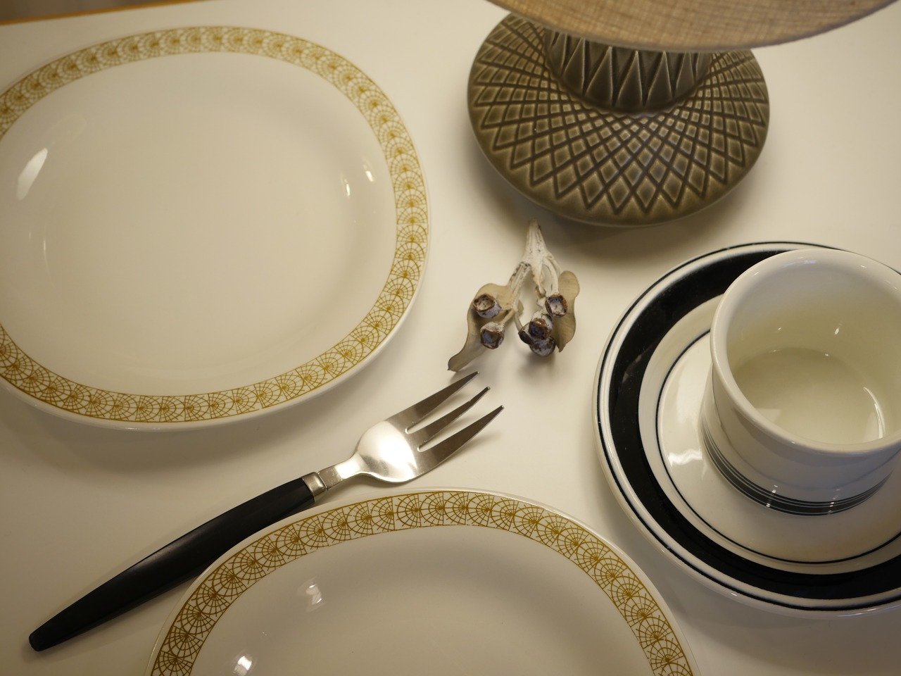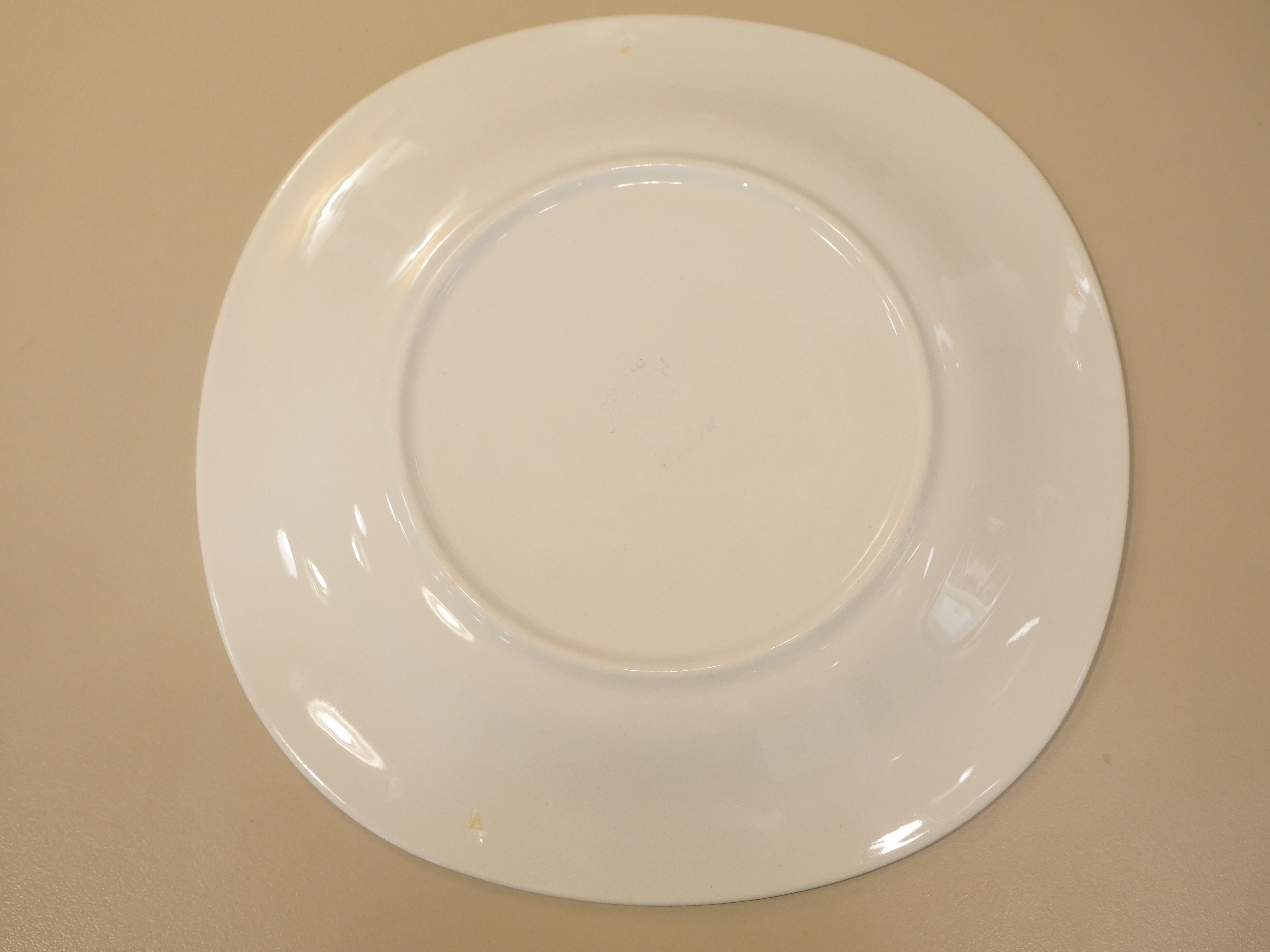 この時代の北欧デザインによくあるシンプルな単色の幾何学模様です。フォルムは四角でありながらかなり角は丸くリム部分も滑らかにすることで食卓でも調和が取れるデザインになっています。上品でシックな食卓の演出にもおすすめです。