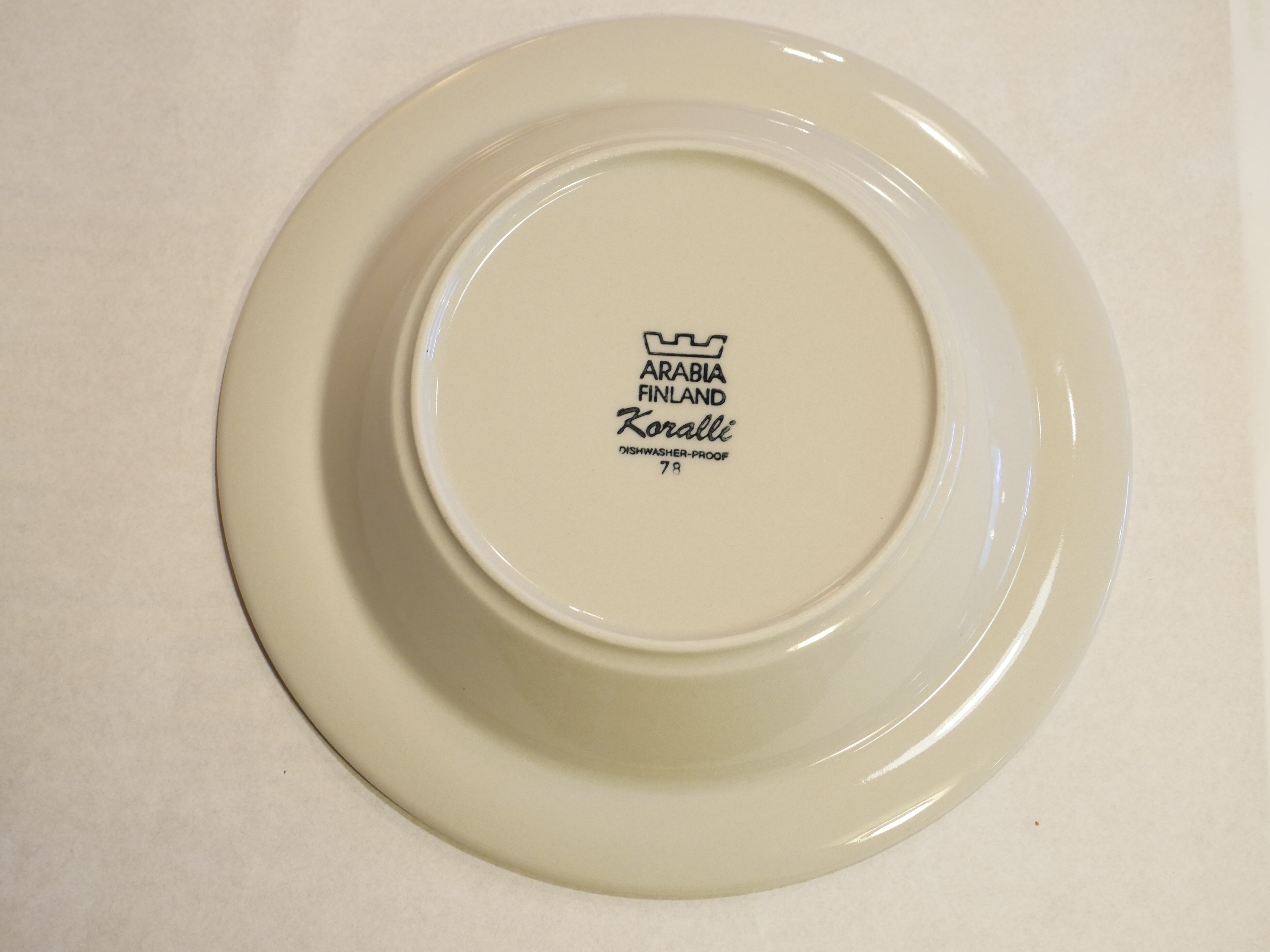 コラーリとはフィンランド語で珊瑚を意味します。このシリーズは製造数が少なく、世界的人気のために稀少なシリーズの一つとなっています。コーラルピンクとはまた違いますが、青みのあるグレーをベースとして、スモーキーなピンクとブラウンの組み合わせは穏やかな海を彩る宝石である珊瑚のように食卓を彩ることでしょう。