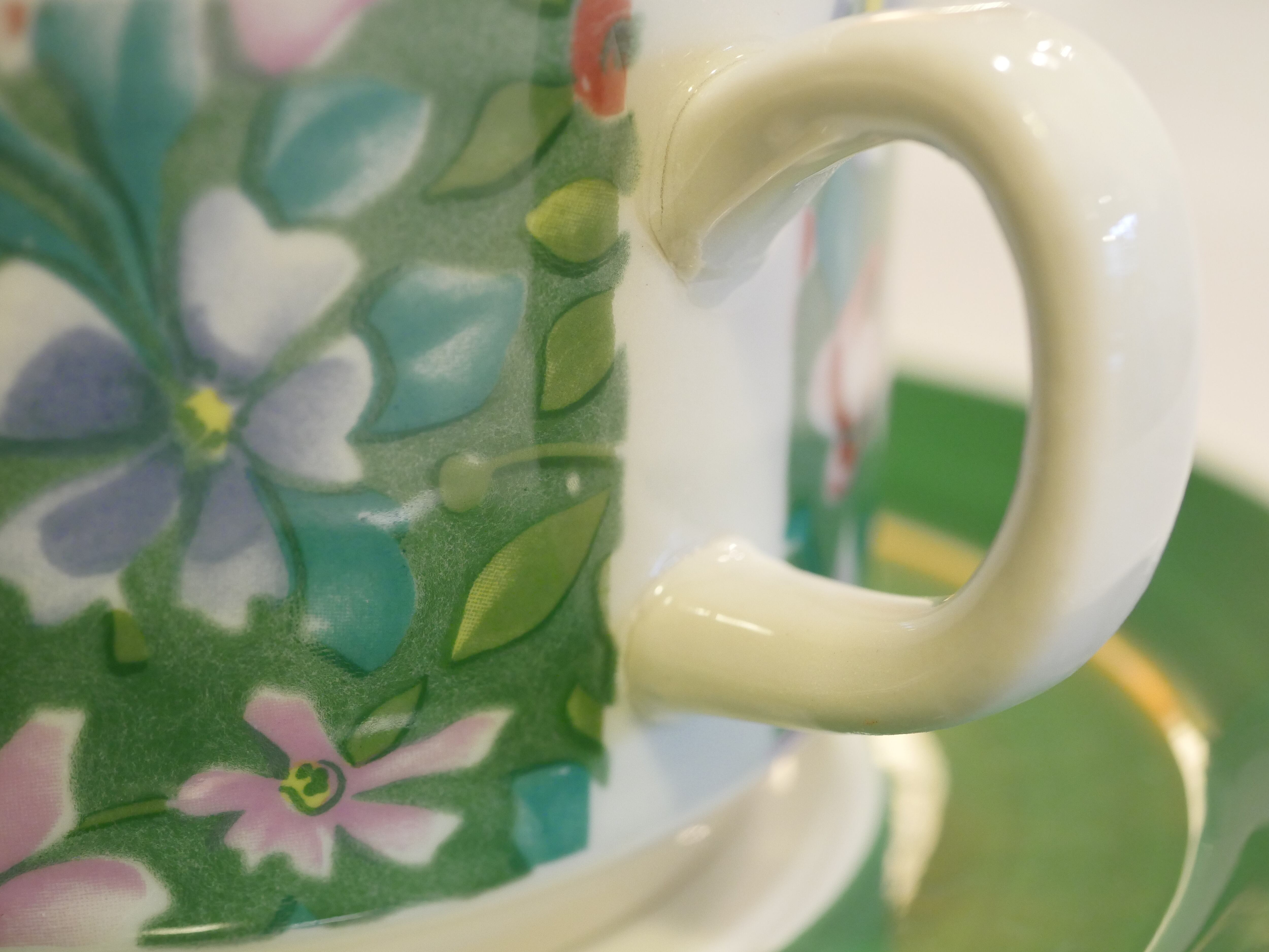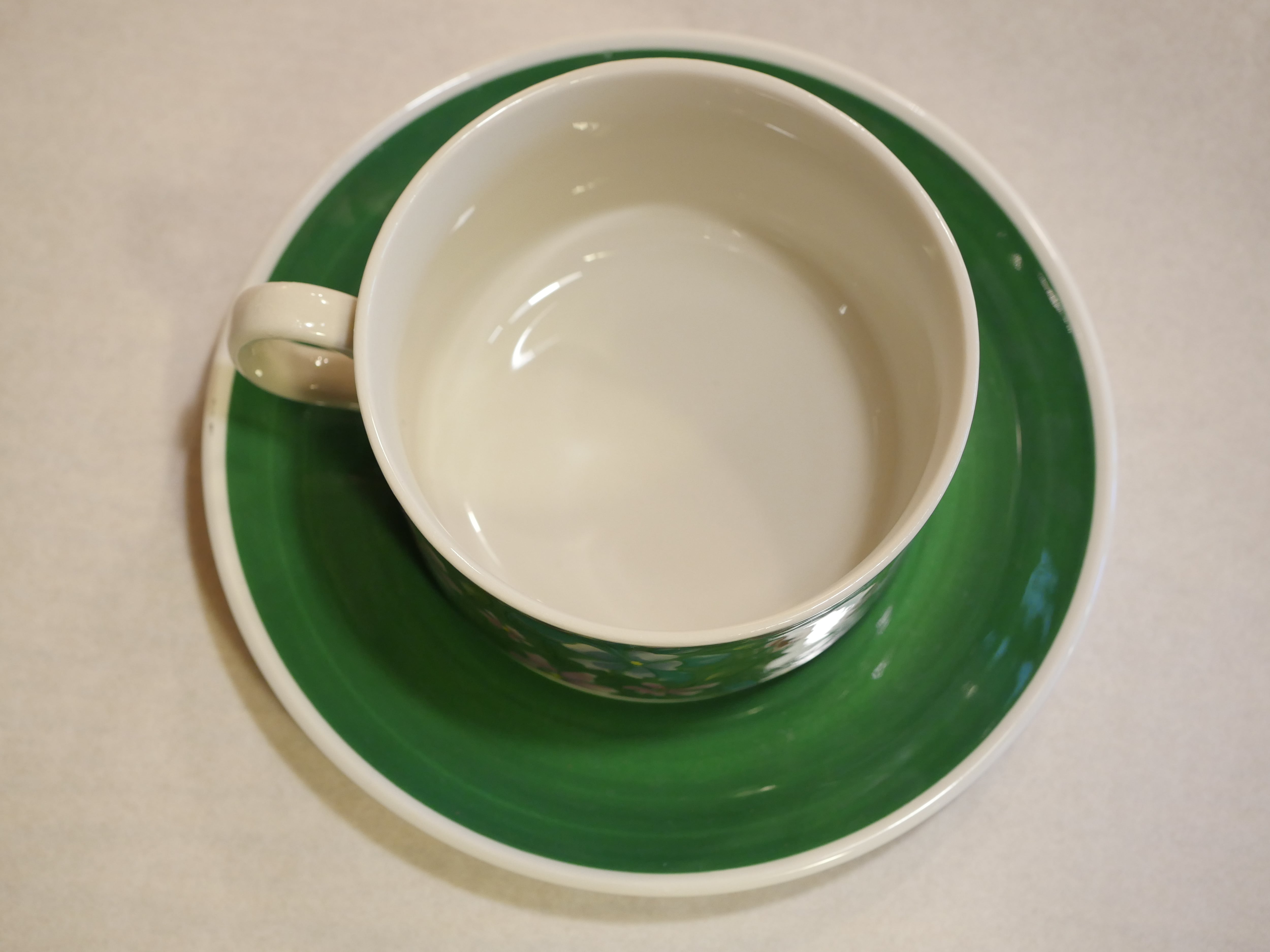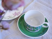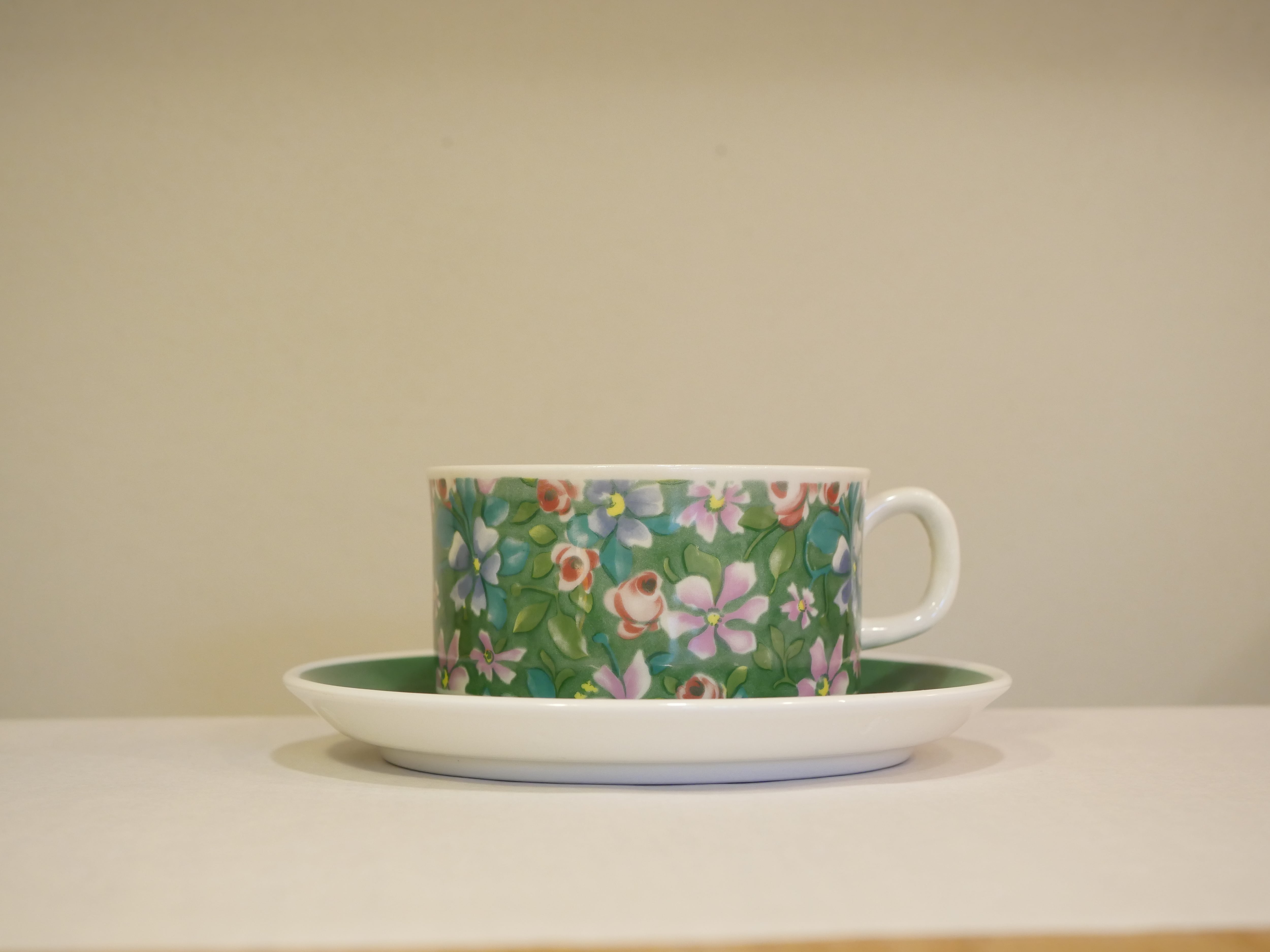 condition : ソーサーに表裏貫入と黒点が一つあります。カップは持ち手の内側に小さな凹凸があります。全体的にヴィンテージとしては良好な状態です。