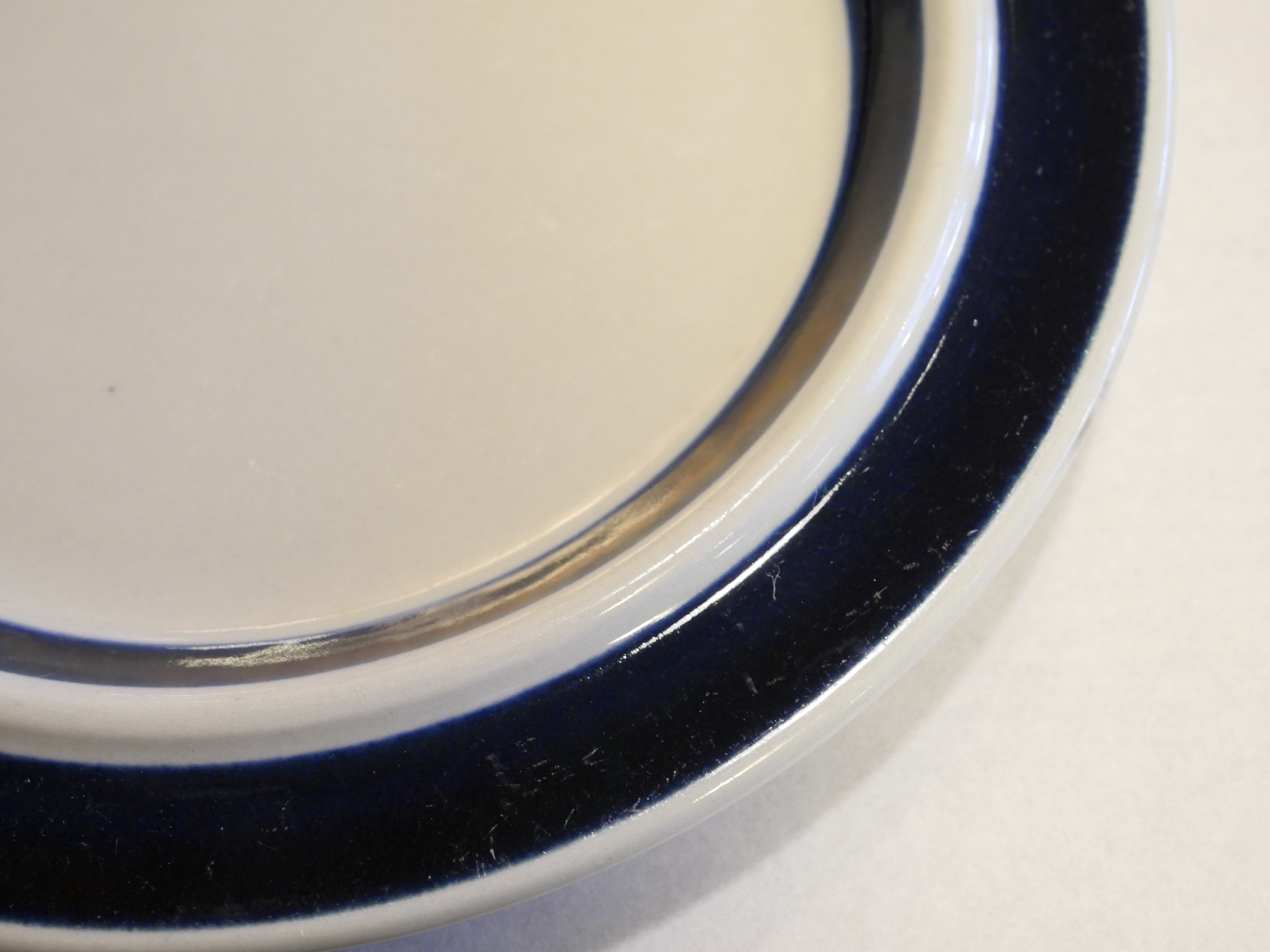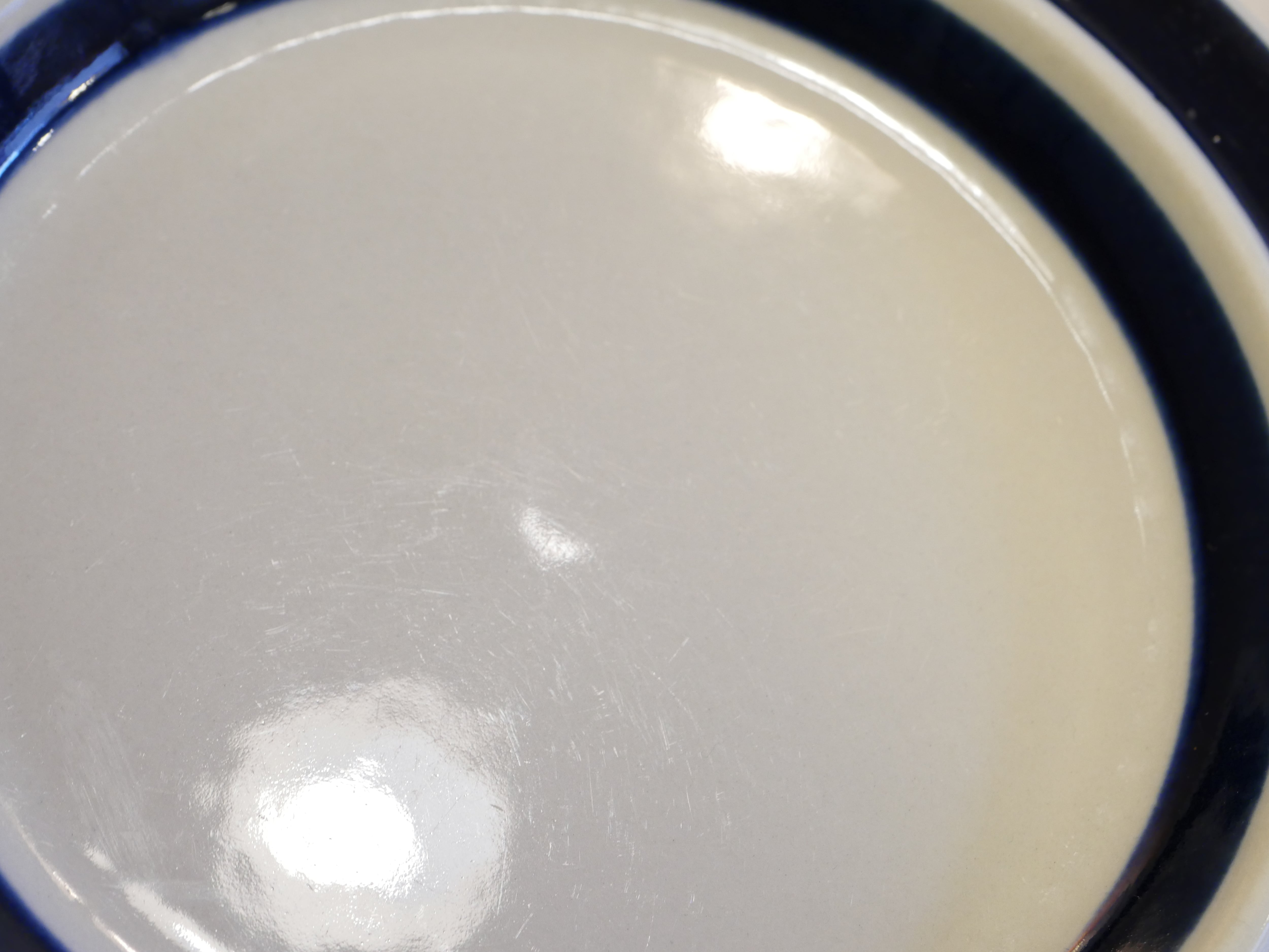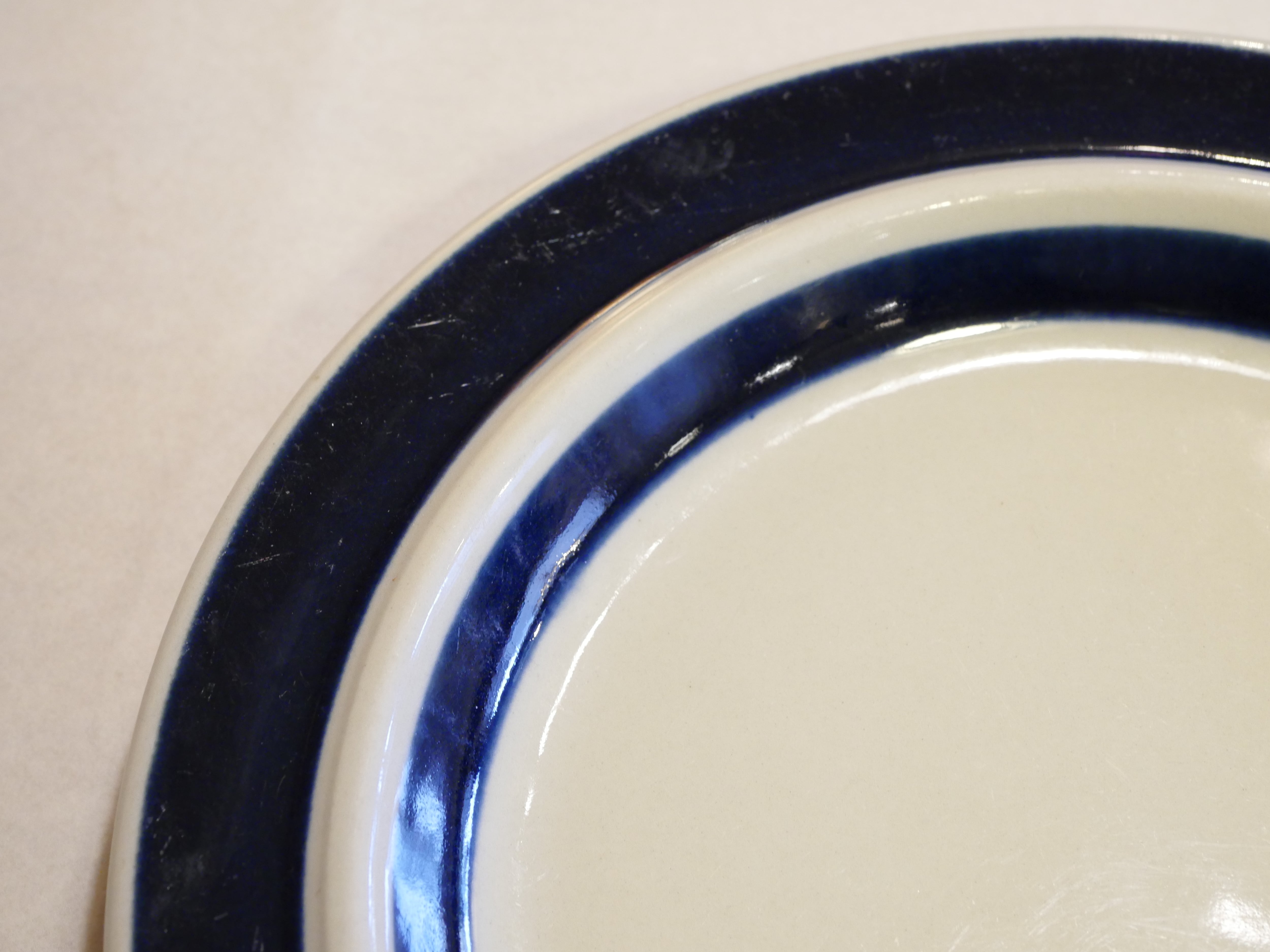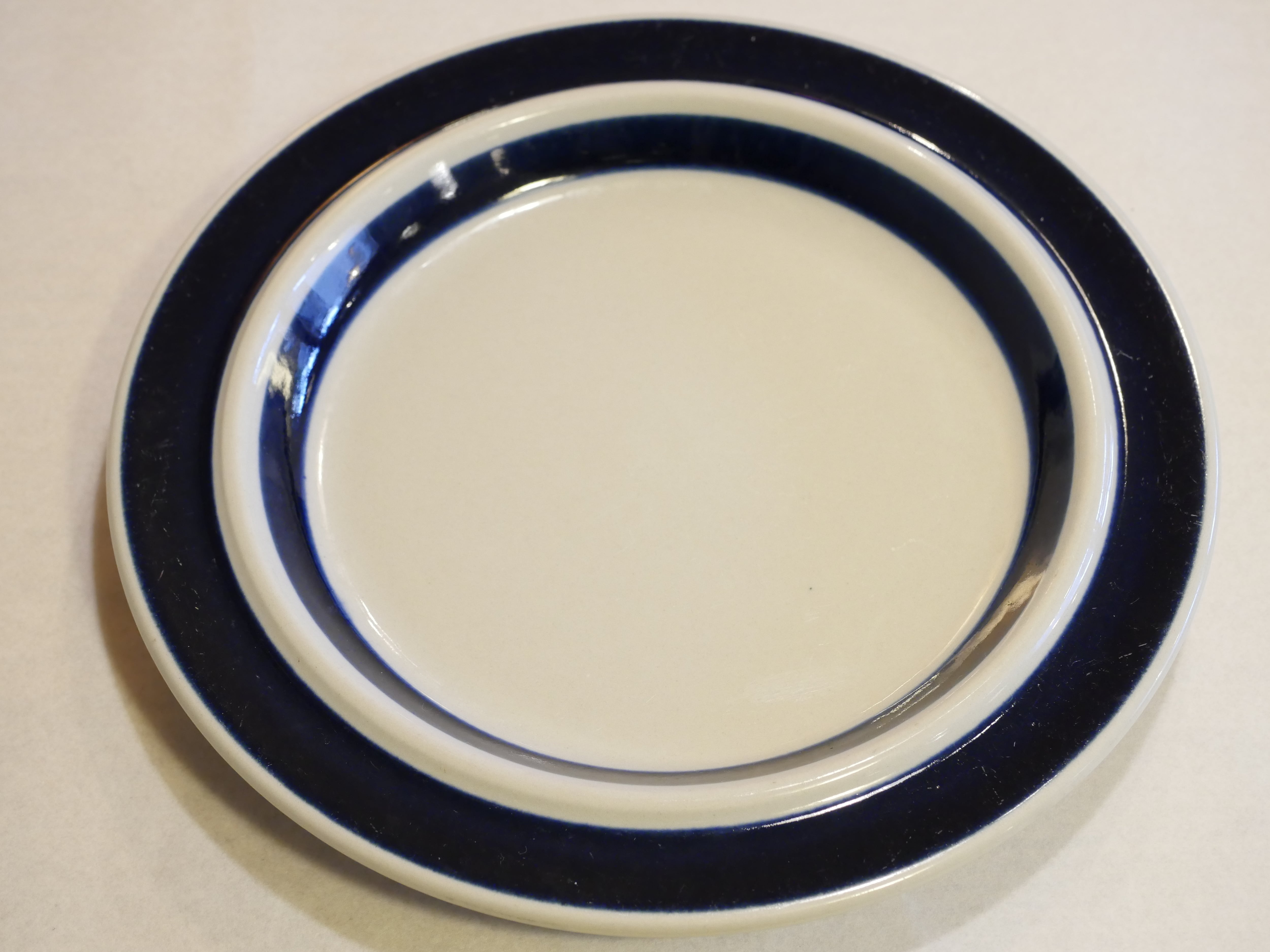 シンプル使いやすいデザインで、淡いグレージュをベースとして深いコバルトブルーのペイントがフィンランドの国旗のような色合わせです。Sモデルのフォルムデザイナーとして有名なウラ・プロコッペがデコレーションも担当しました。こちらはティーカップと合わせるとトリオになるサイズです。家庭に馴染むデザインを提供するARABIA社の代表的シリーズです。